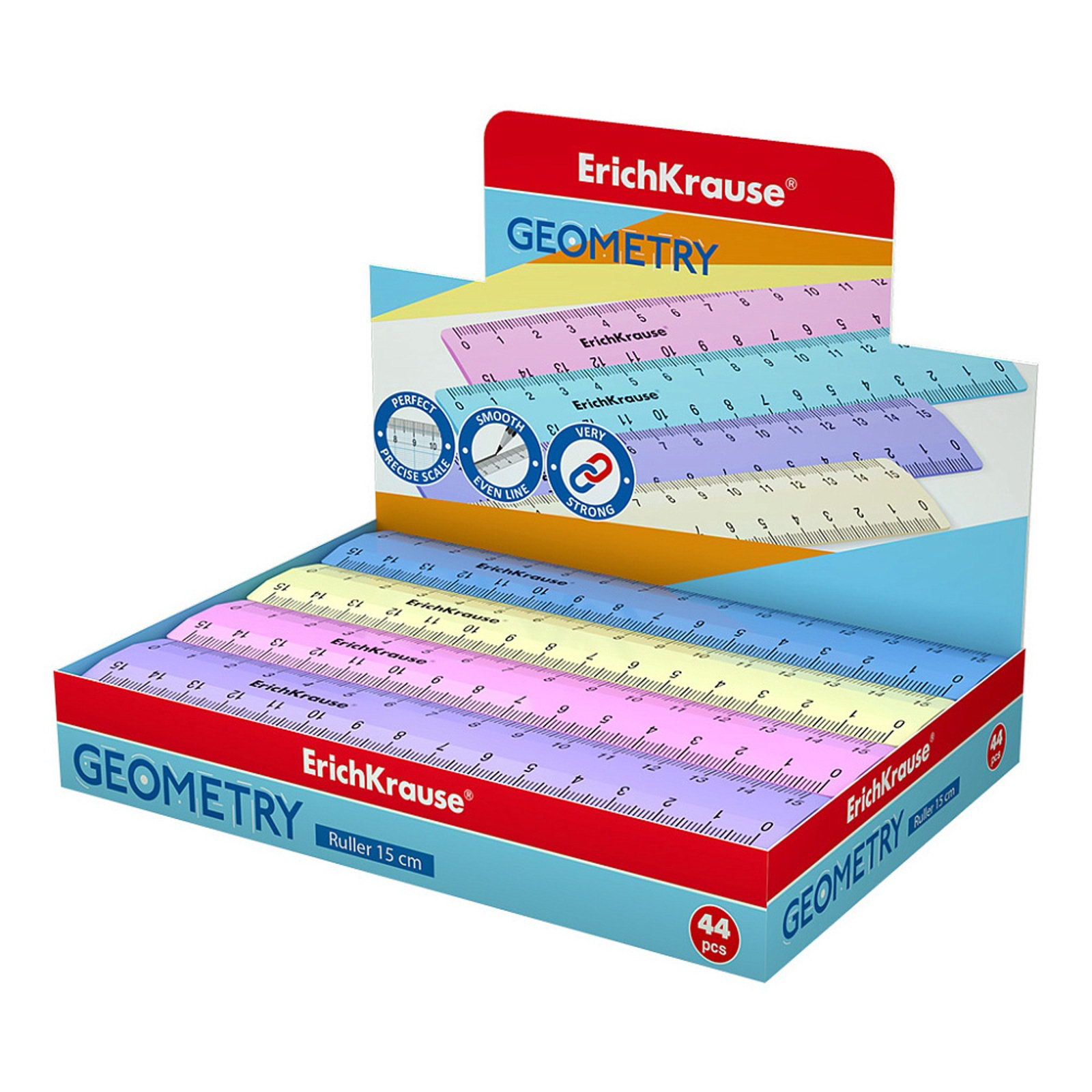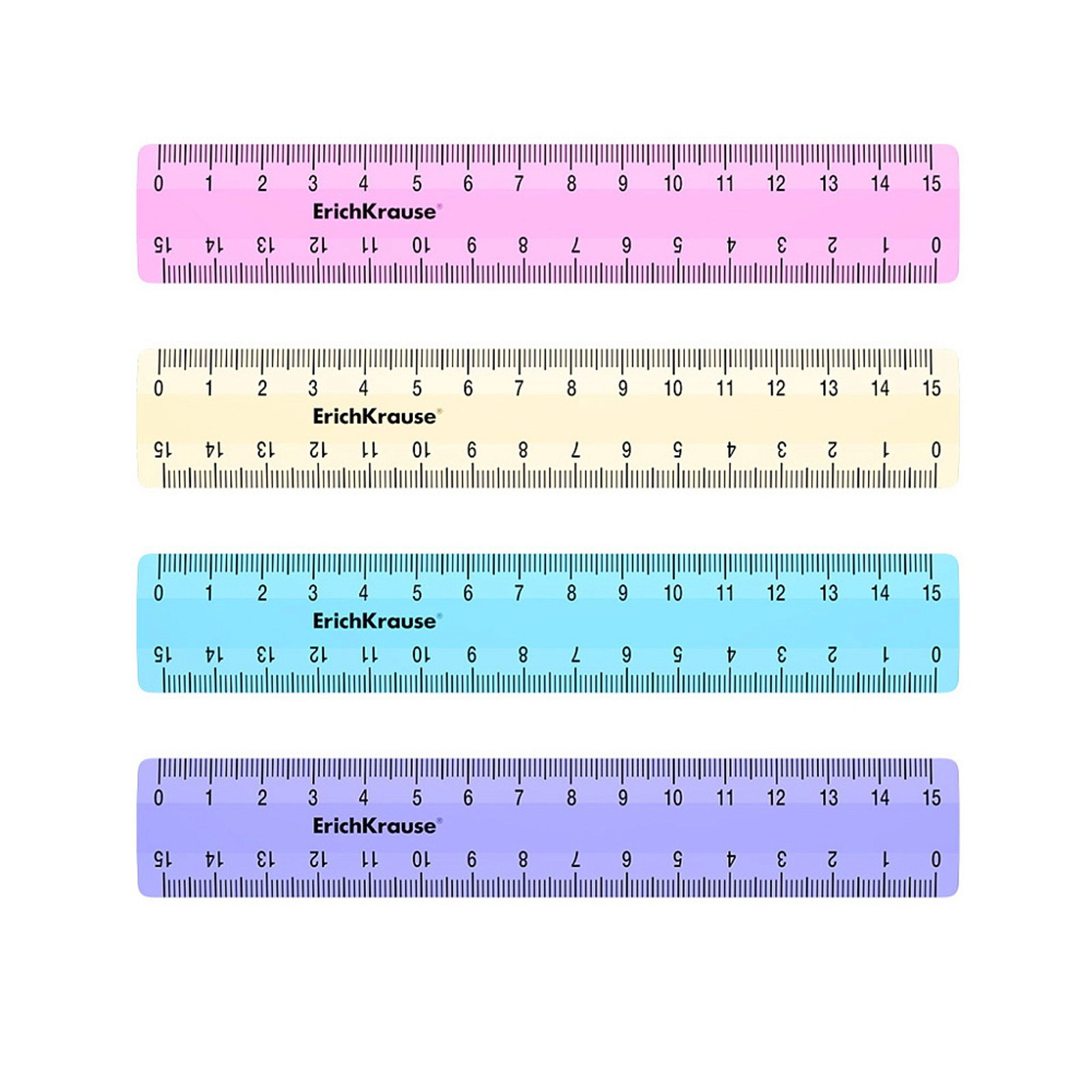 Линейка 15 см "Pastel", непрозрачная, двухсторонняя шкала, микс, 16x2.7x0.2 см., ErichKrause, Россия