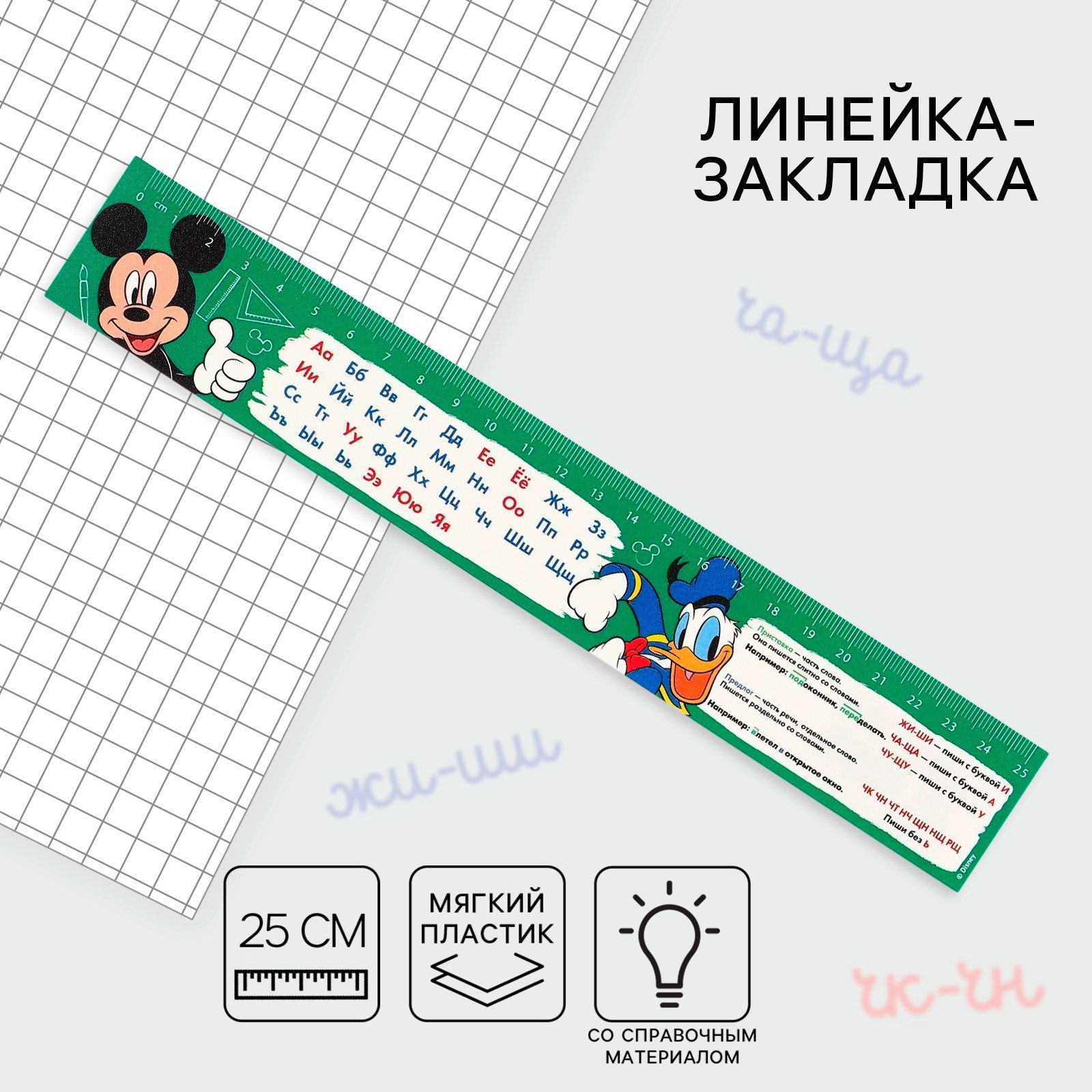 Линейка-закладка пластиковая 25 см, "Алфавит" Микки Маус, гибкая, ArtFox STUDY, Китай