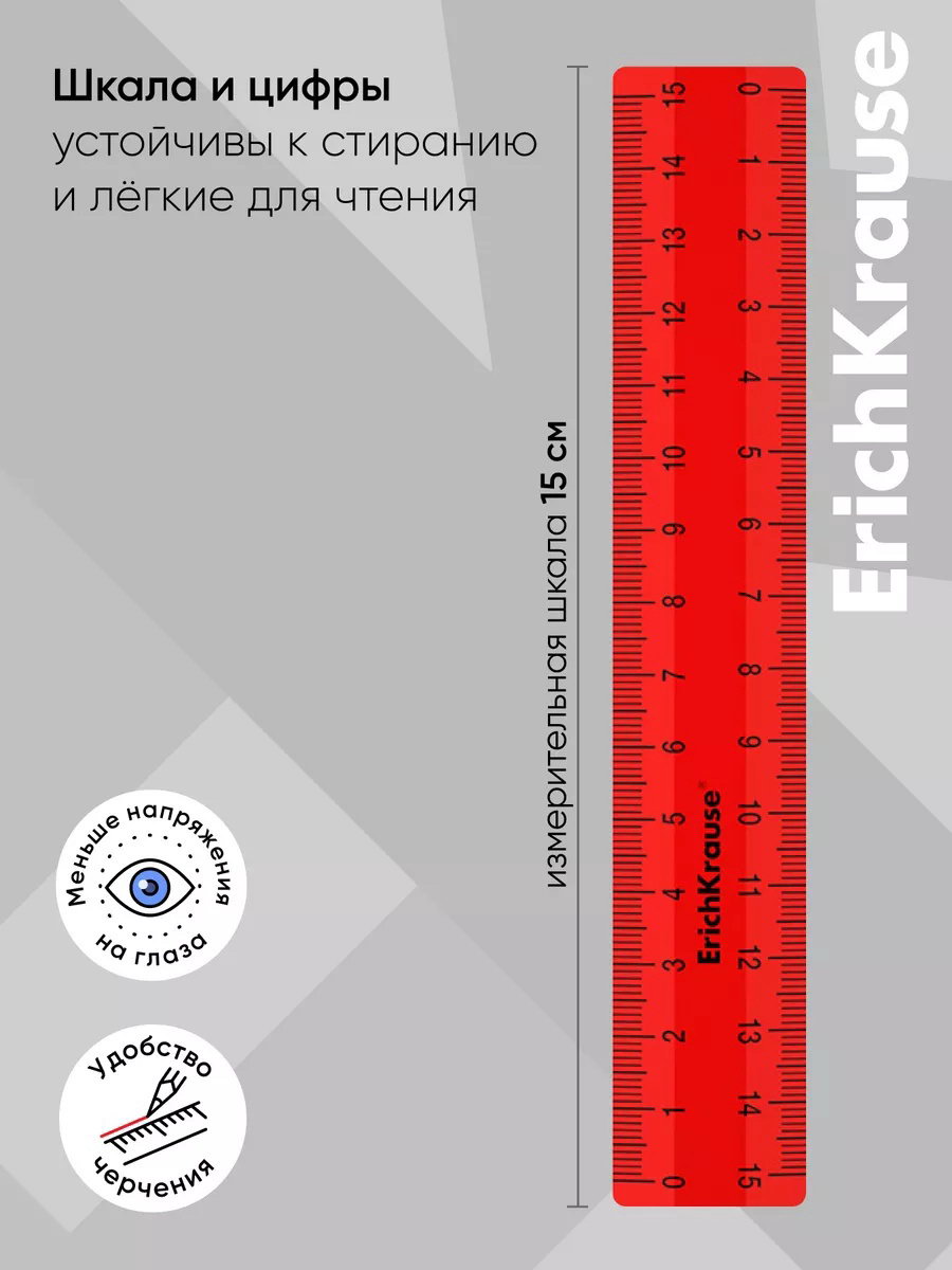 Линейка 15см Classic, красная, флоупак, 0.2x21x4.5 см., ErichKrause, Россия