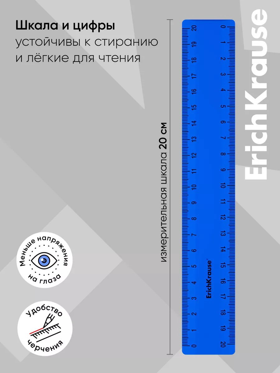 Линейка 20см Classic, синяя, флоупак, 0.3x4.5x29 см., ErichKrause, Россия