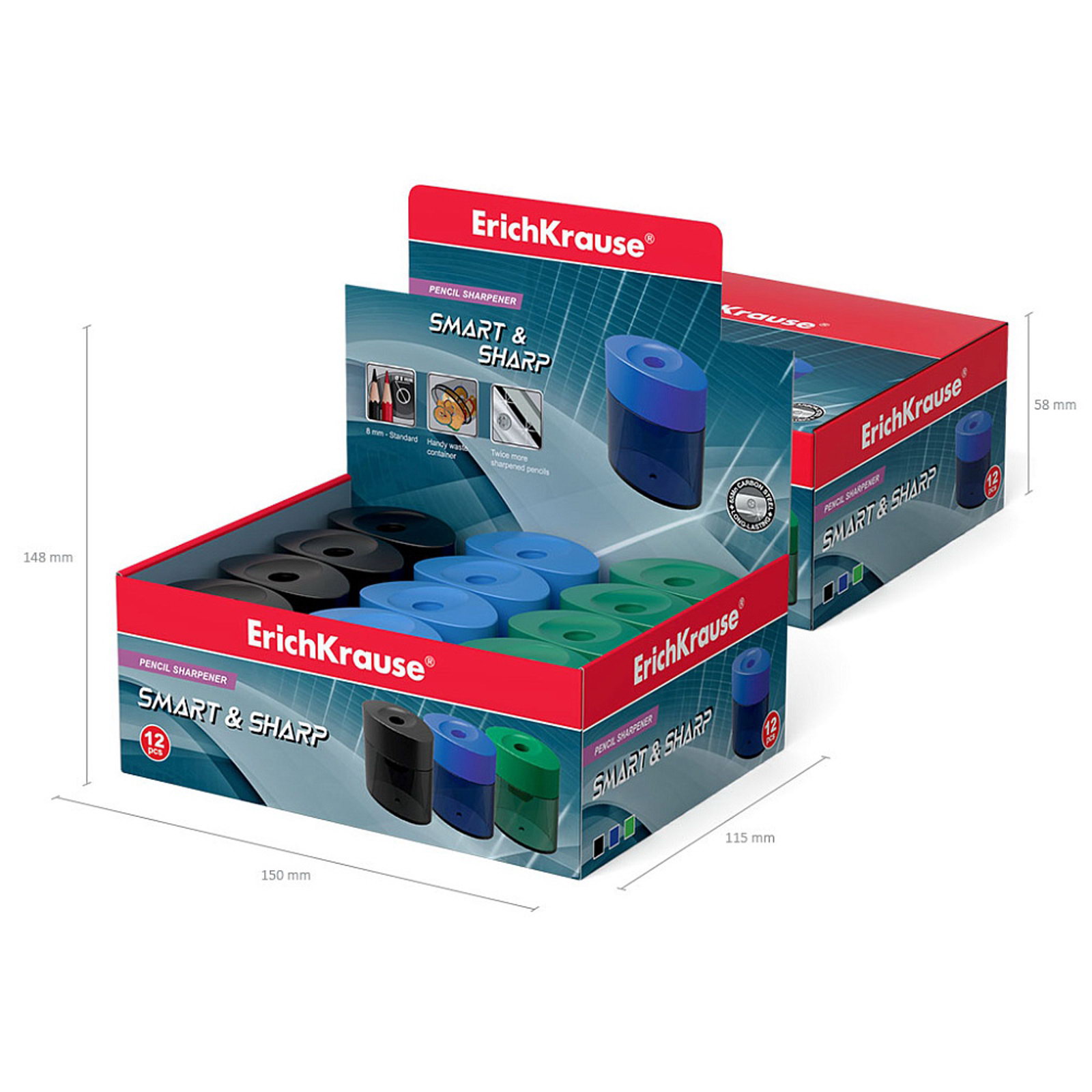 Точилка Erich Krause SMART & SHARP, 1 отверстие, с контейнером, отверстие диаметром 8 мм, МИКС, 4x2x4 см., ErichKrause, Китай
