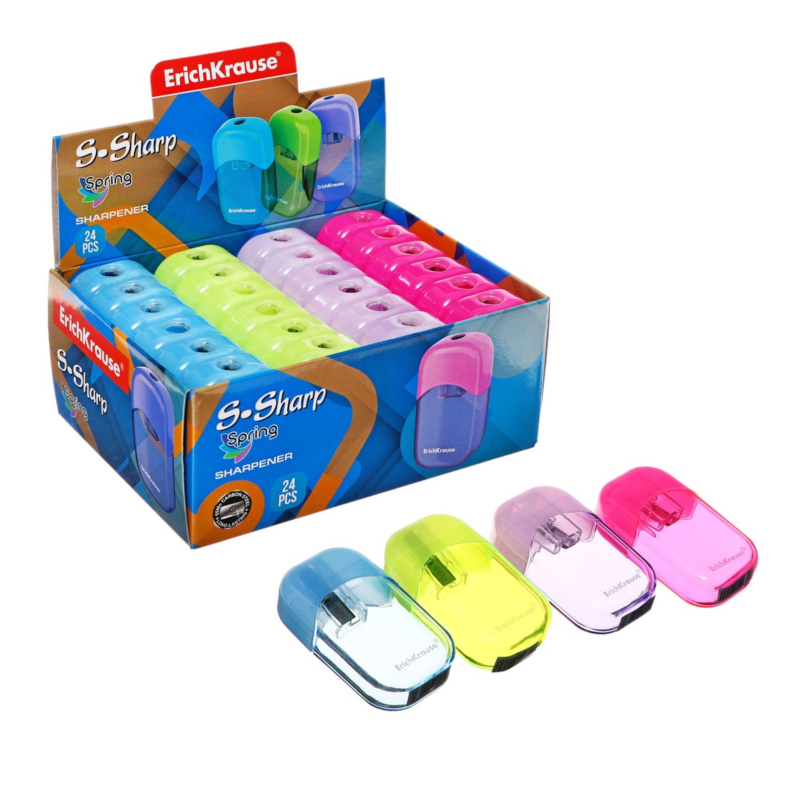 Точилка одинарная "S-Sharp Spring", пластик, с контейнером, высококачественное лезвие, микс, 6x3.5x1.7 см., ErichKrause, Китай