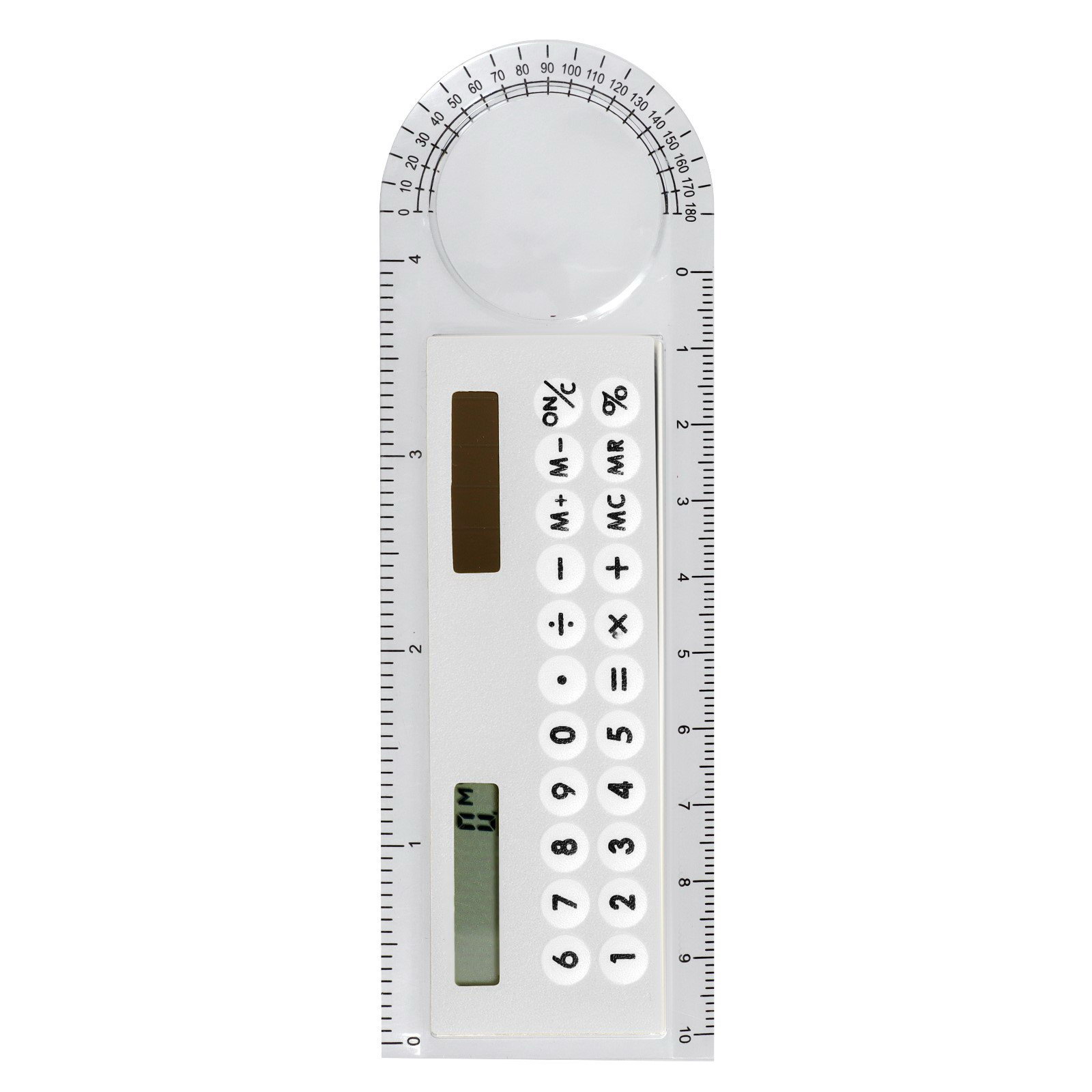 Калькулятор - линейка, 10 см, 8-разрядный, корпус прозрачный, с транспортиром, работает от света, МИКС, Китай
