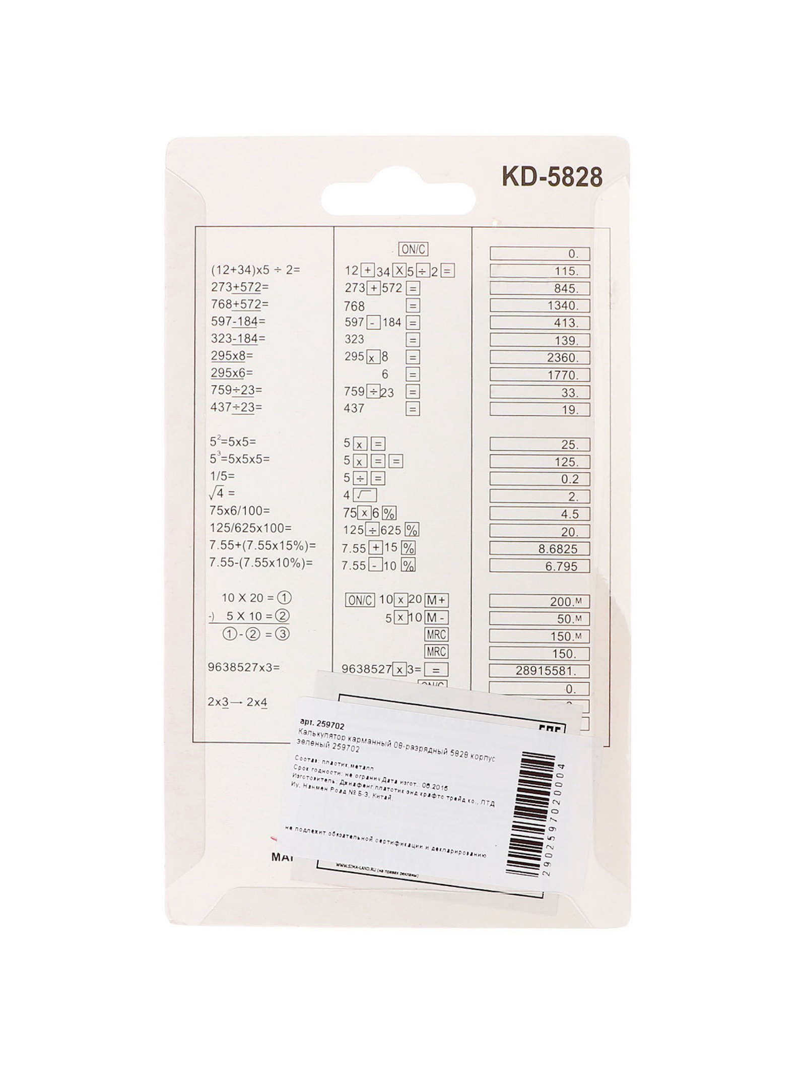 Калькулятор карманный, 08-разрядный 5828, корпус зеленый, Китай