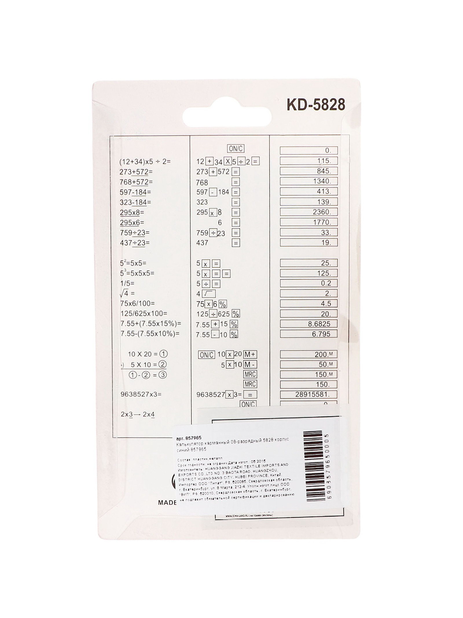 Калькулятор карманный, 08-разрядный, 5828 корпус, синий, Китай