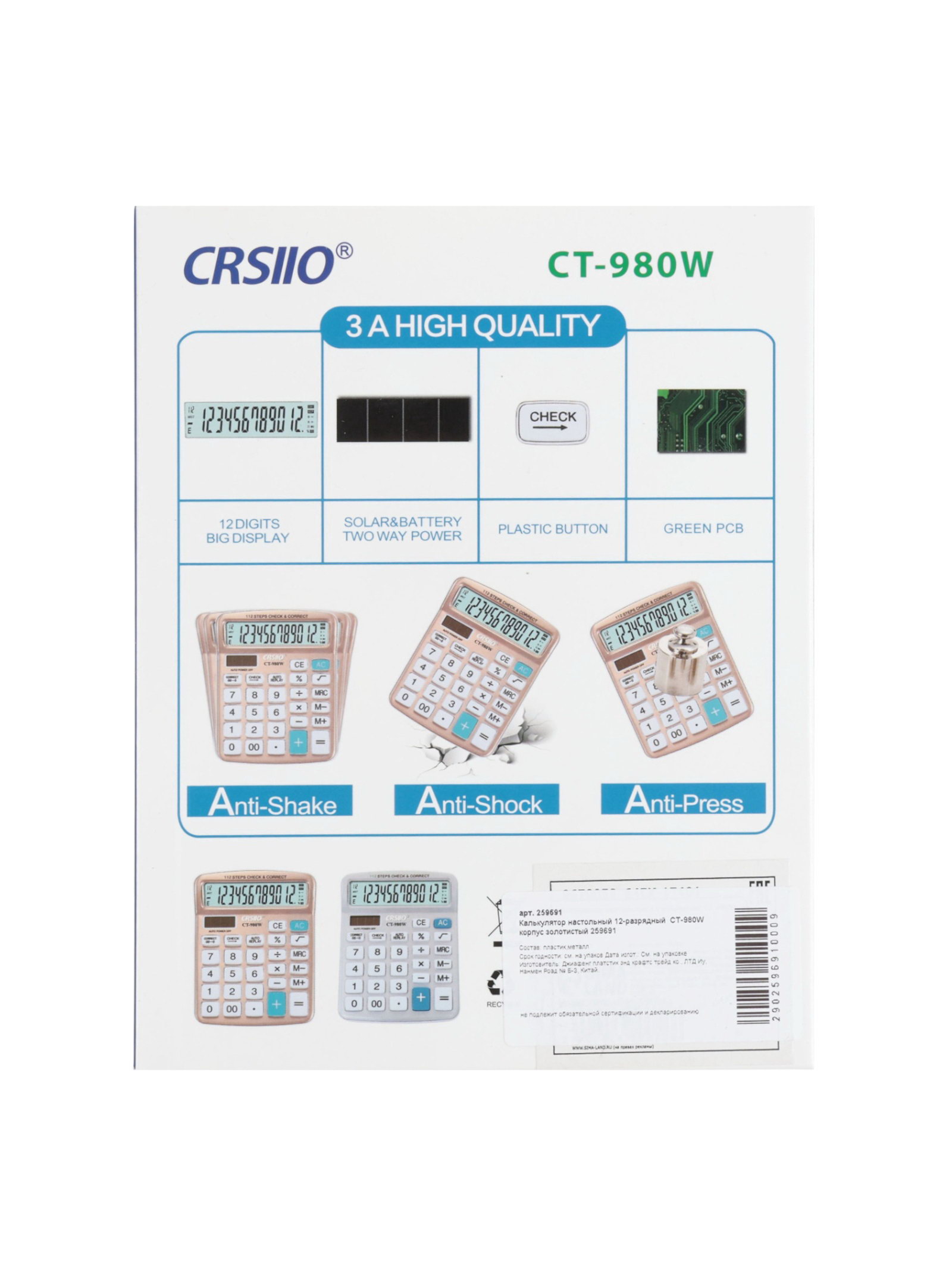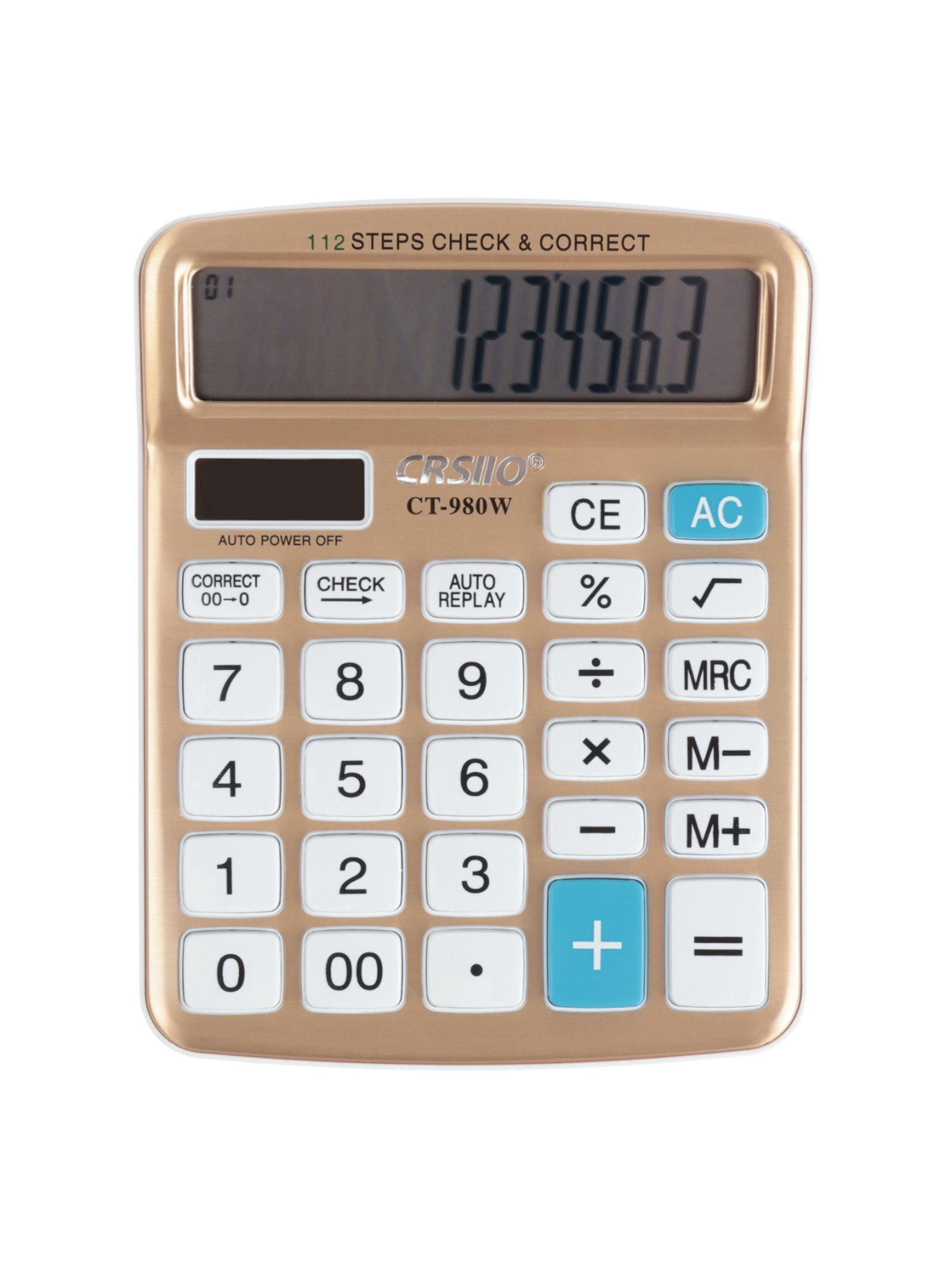 Калькулятор настольный 12-разрядный CT-980W, корпус золотистый, Китай