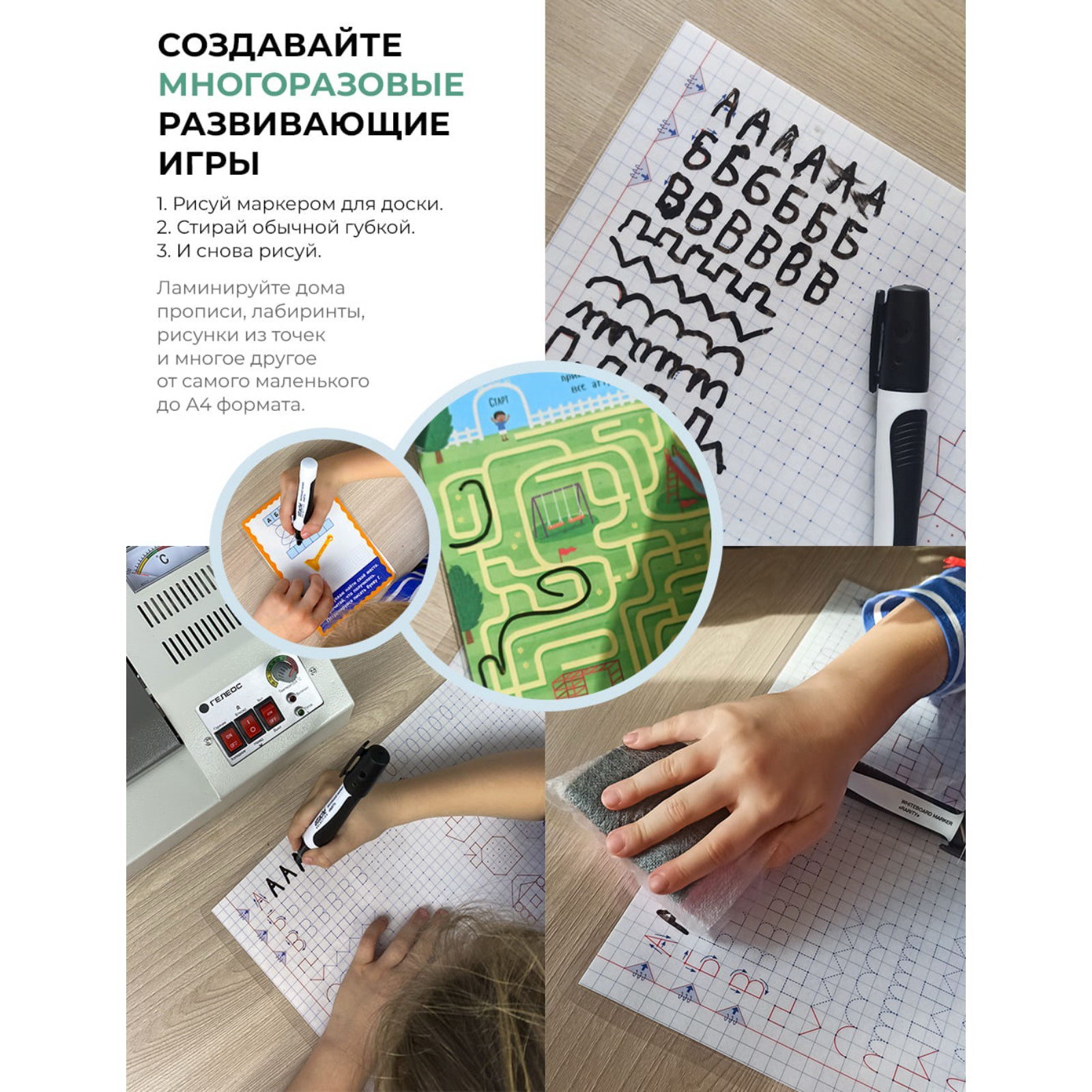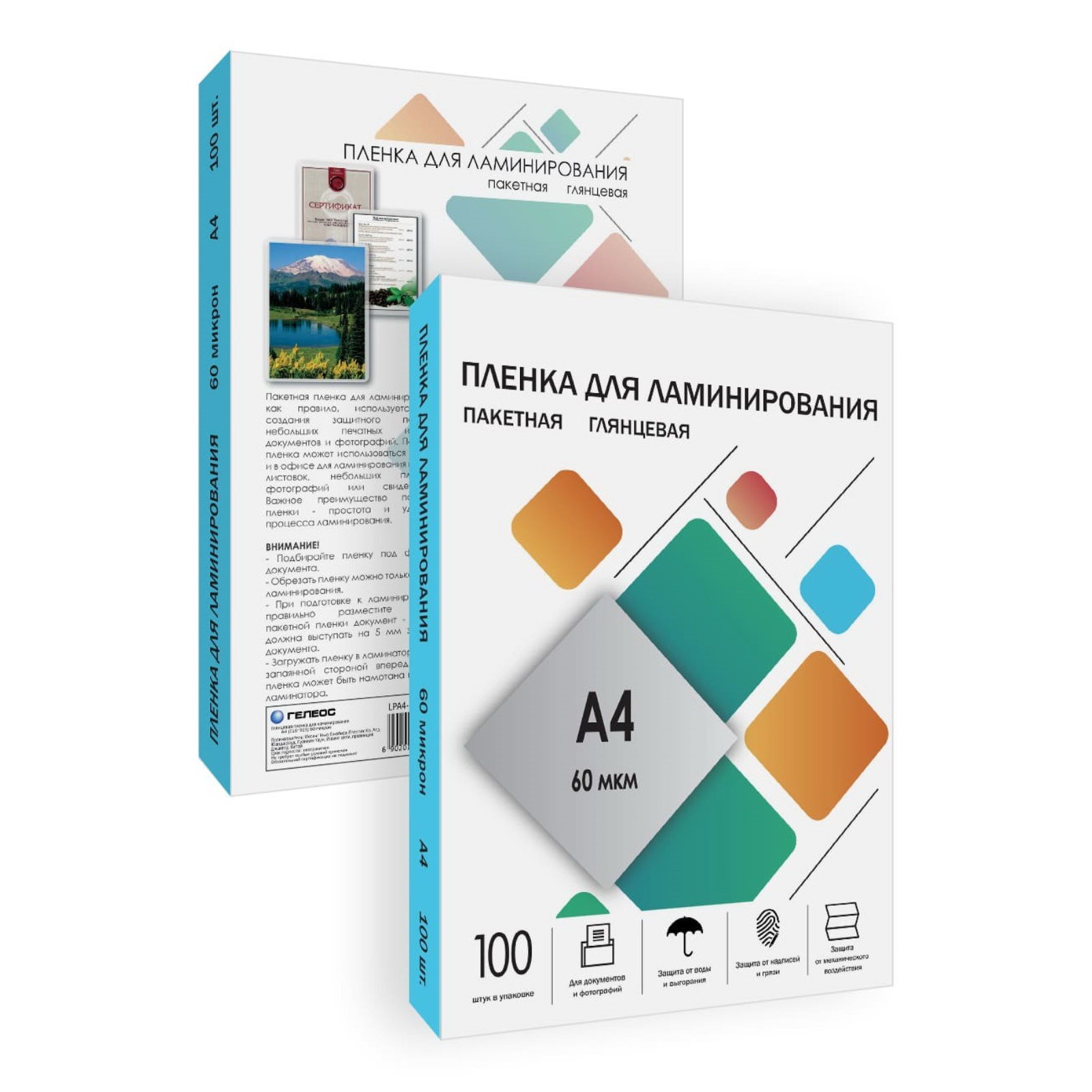 Пленка для ламинирования A4 216x303 мм, 60 мкм, 100 штук, глянцевые, Гелеос, 31x22x1.3 см., ГЕЛЕОС, Китай
