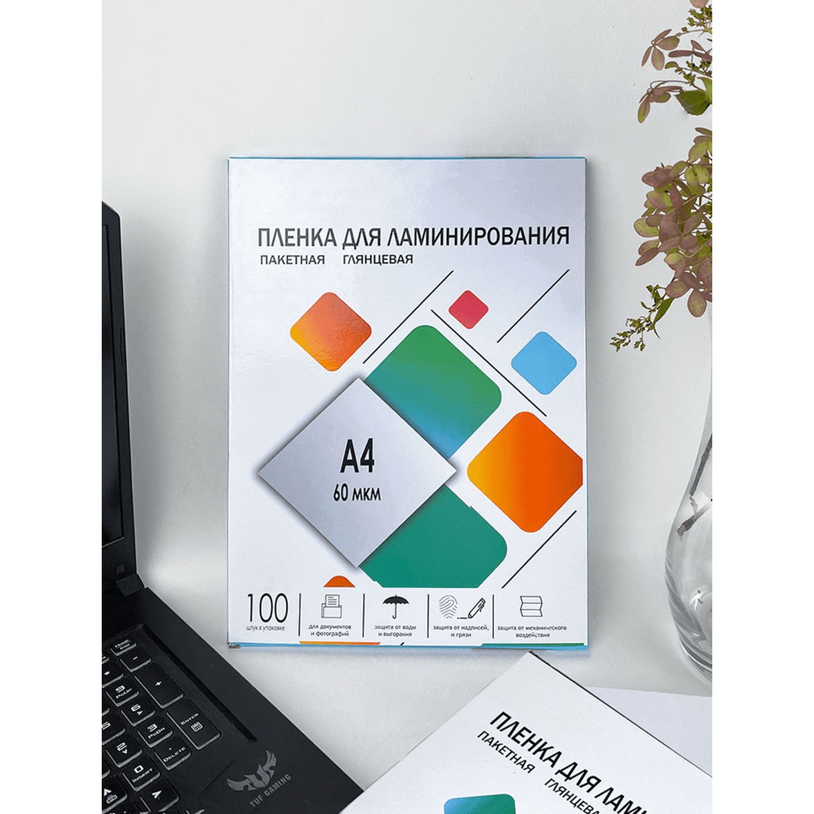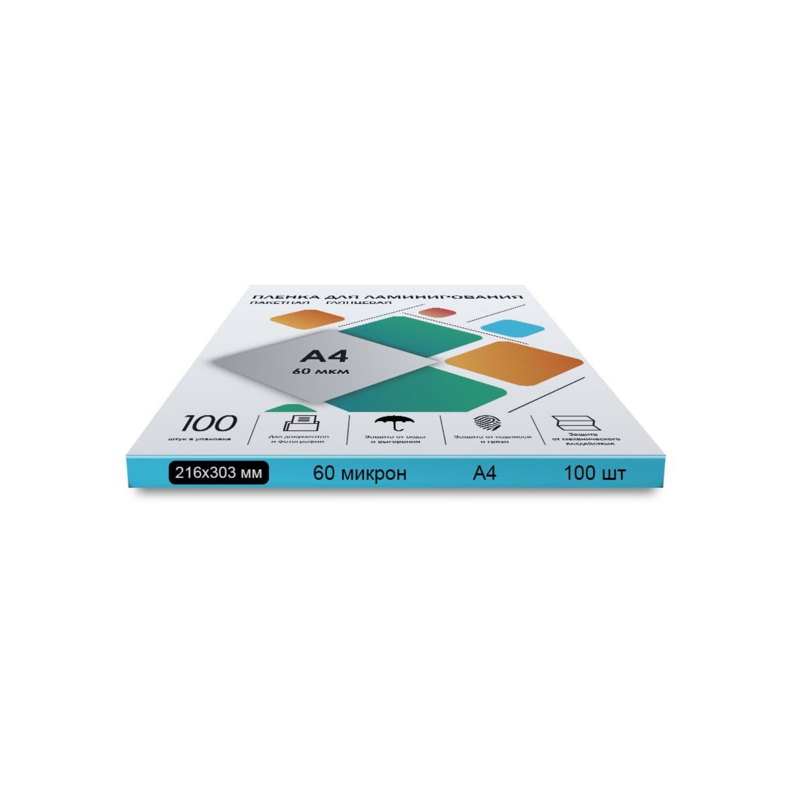 Размер упаковки: 30.5 x 1.5 x 21.5 см. tnved: 3926100000 В упаковке, шт.: 100 Толщина, мкм: 60 Тип плёнки: Глянцевая Цвет: Прозрачный Максимальный формат: A4 Температурное ограничение: Нет Штрихкод на единице товара: Да Европодвес: Нет Температурное ограничение транспортировки: Нет Формат: A4 (216 x 303 мм) Глянцевая пакетная пленка размером 216 x 303 мм и плотностью 60 мкм прекрасно подходит для ламинирования документов. Предназначена для использования в ламинаторах "горячего" типа. Придает документу жесткость, обладает высокой прозрачностью после ламинации, защищает документ от механических повреждений и воздействия влаги.