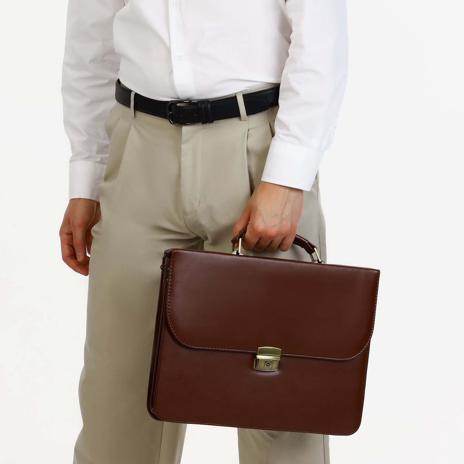 Портфель деловой мужской на клапане, 38x4x28 см, коричневая, 4x38x28 см., Китай