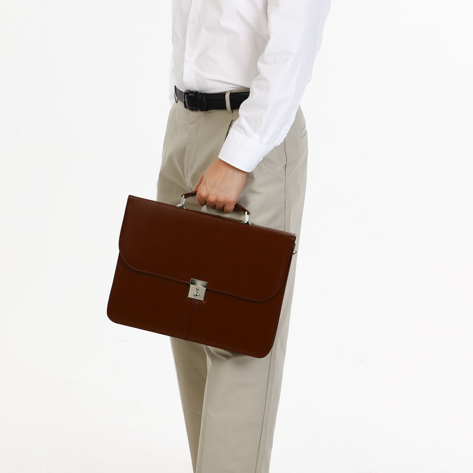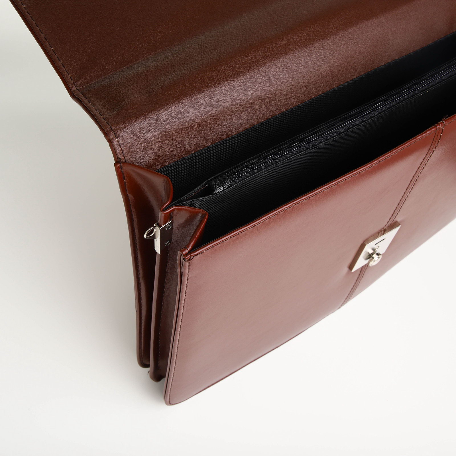 Портфель деловой мужской на клапане, 38x3.5x28 см, коричневая, 3.5x38x28 см., Китай