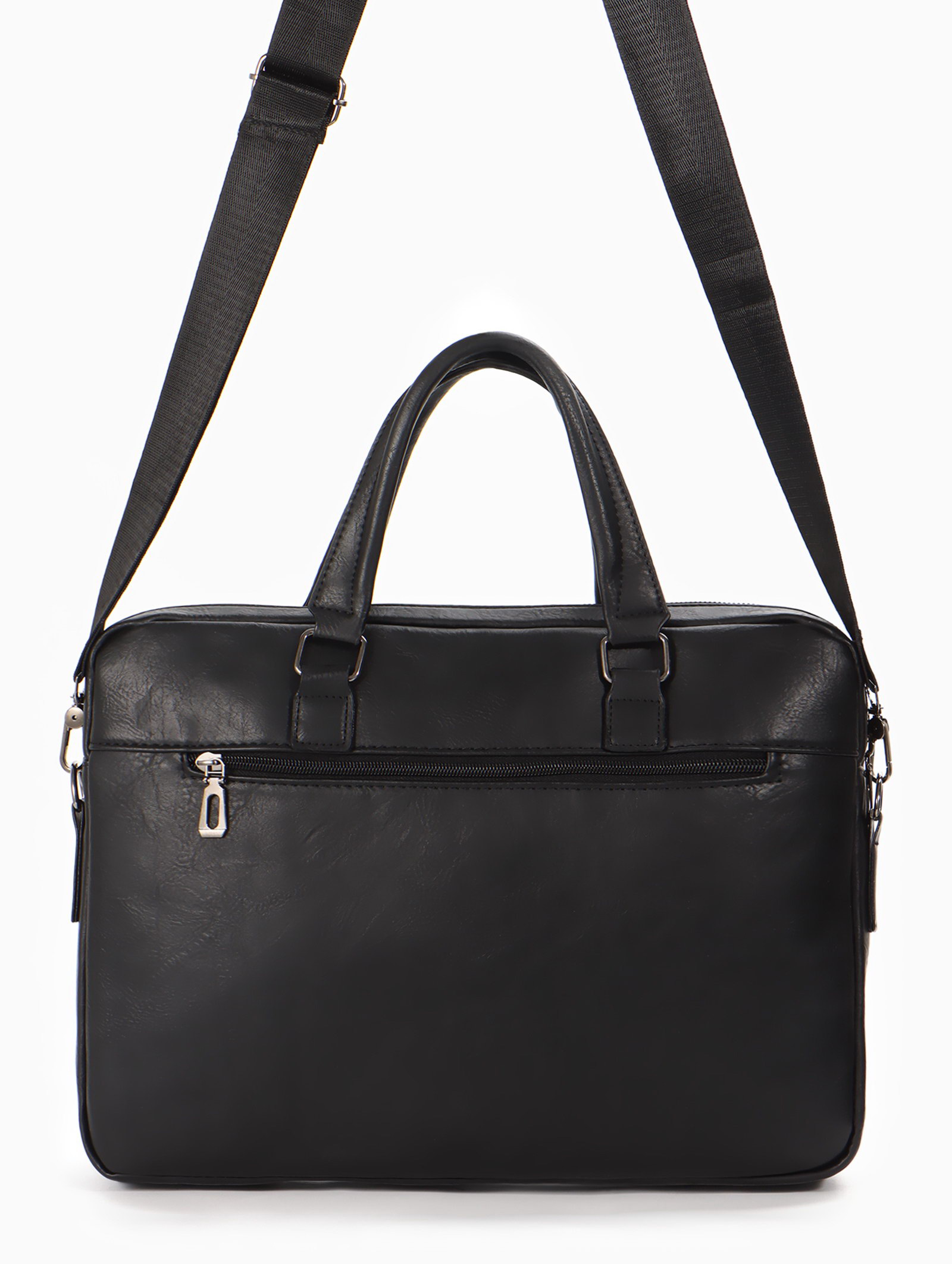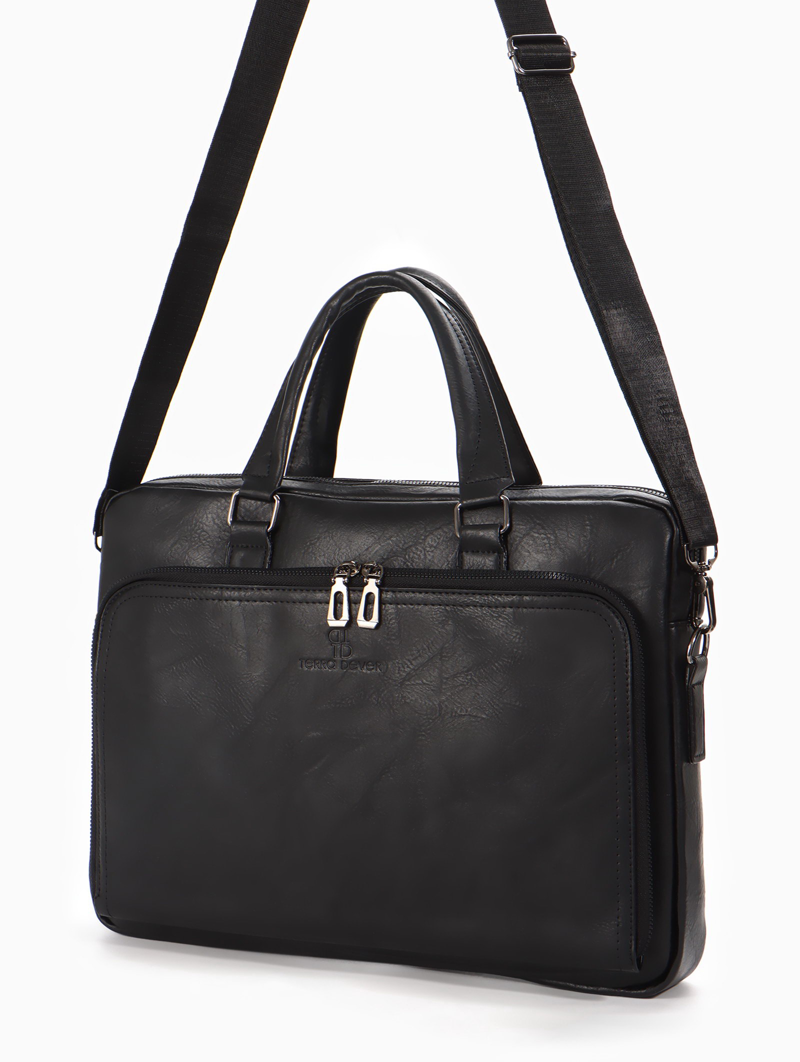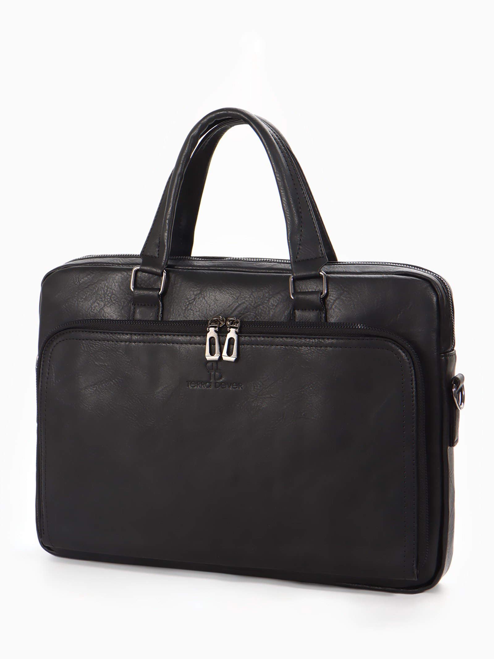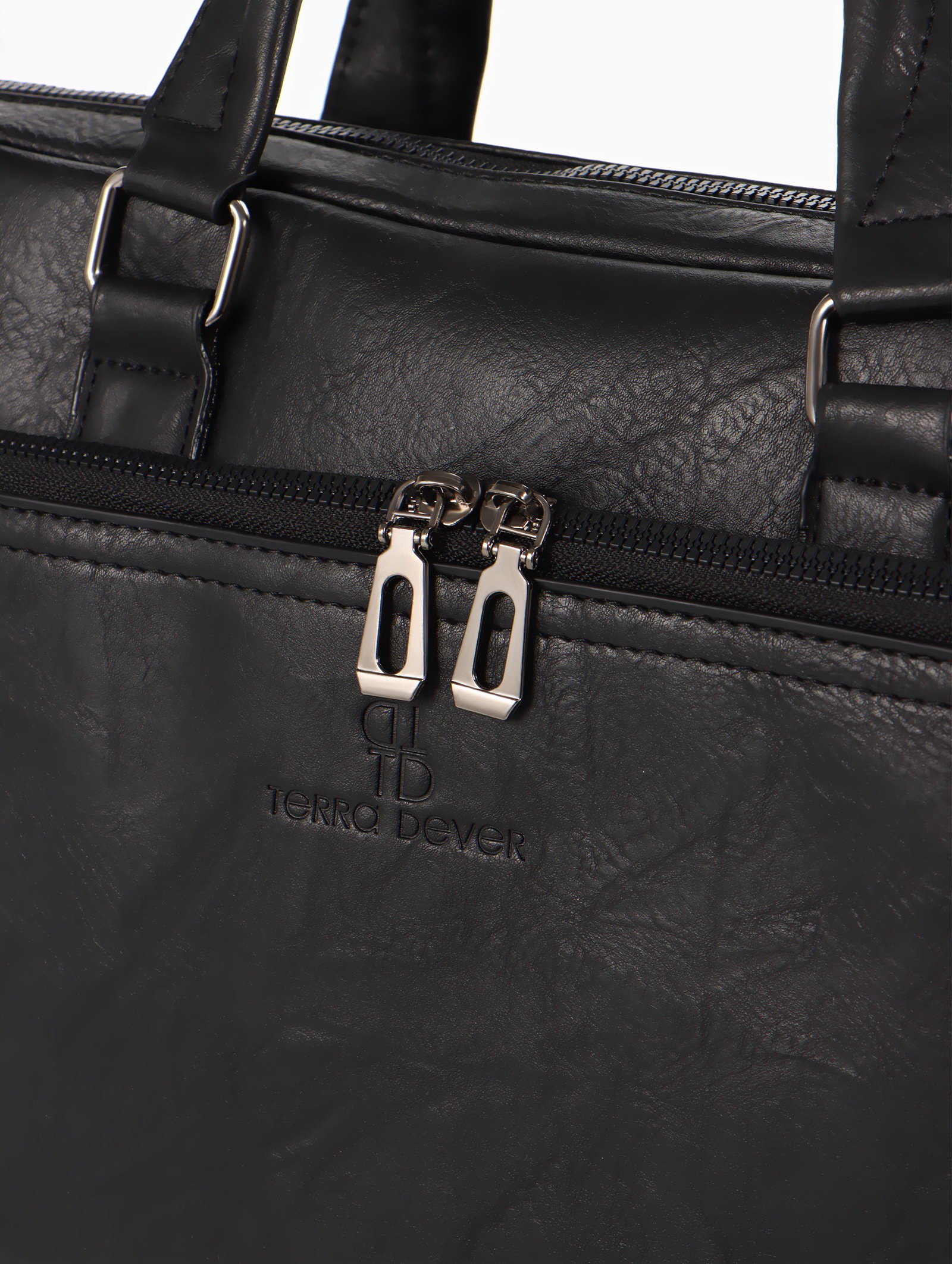 Сумка деловая, мужская, на молнии, длинный ремень, 38x8x29 см, чёрная, 8x38x29 см., Terra Dever, Китай