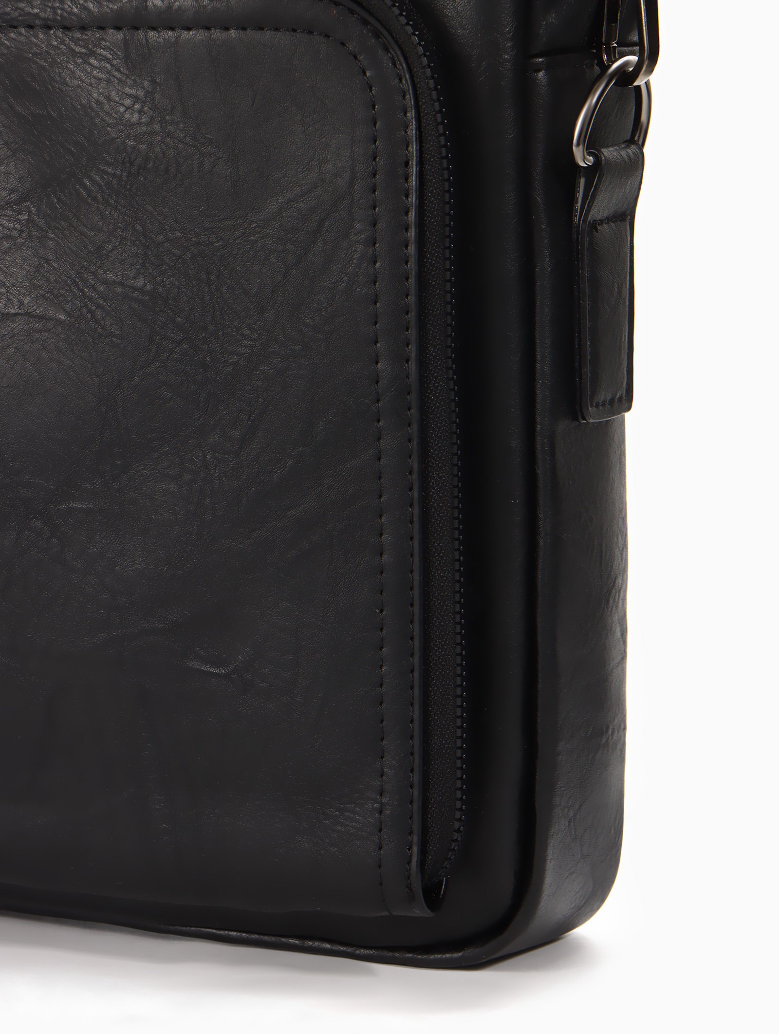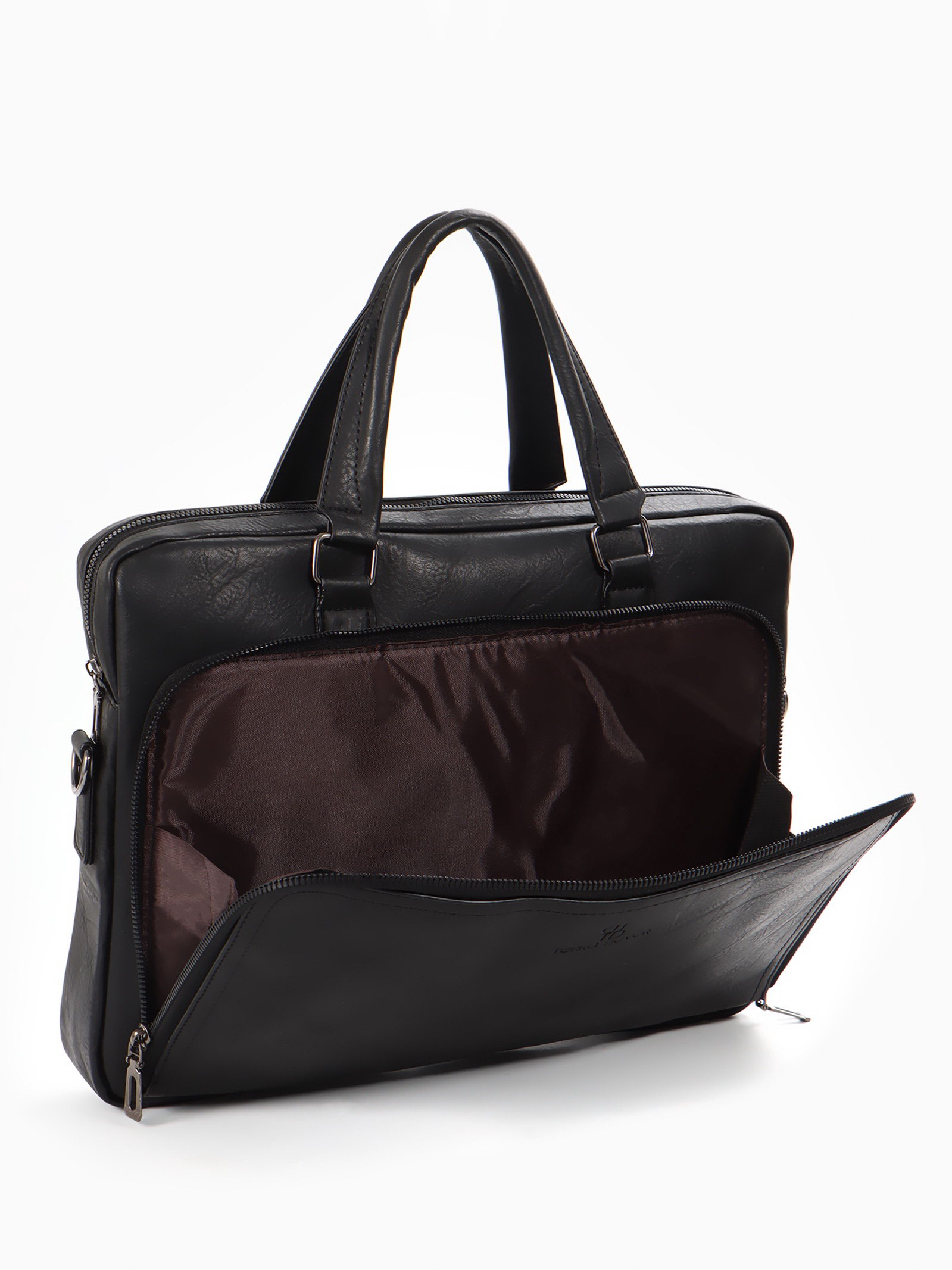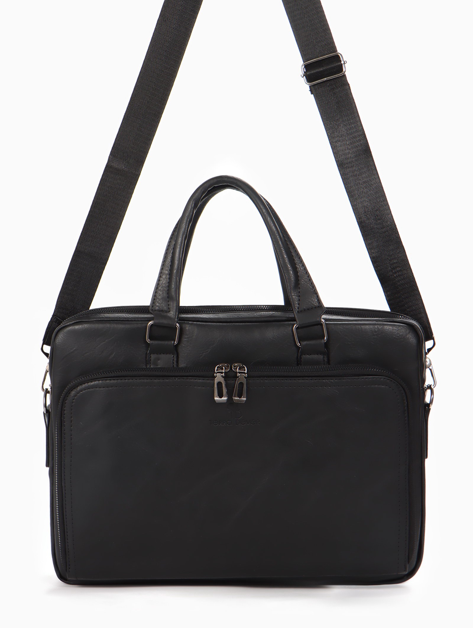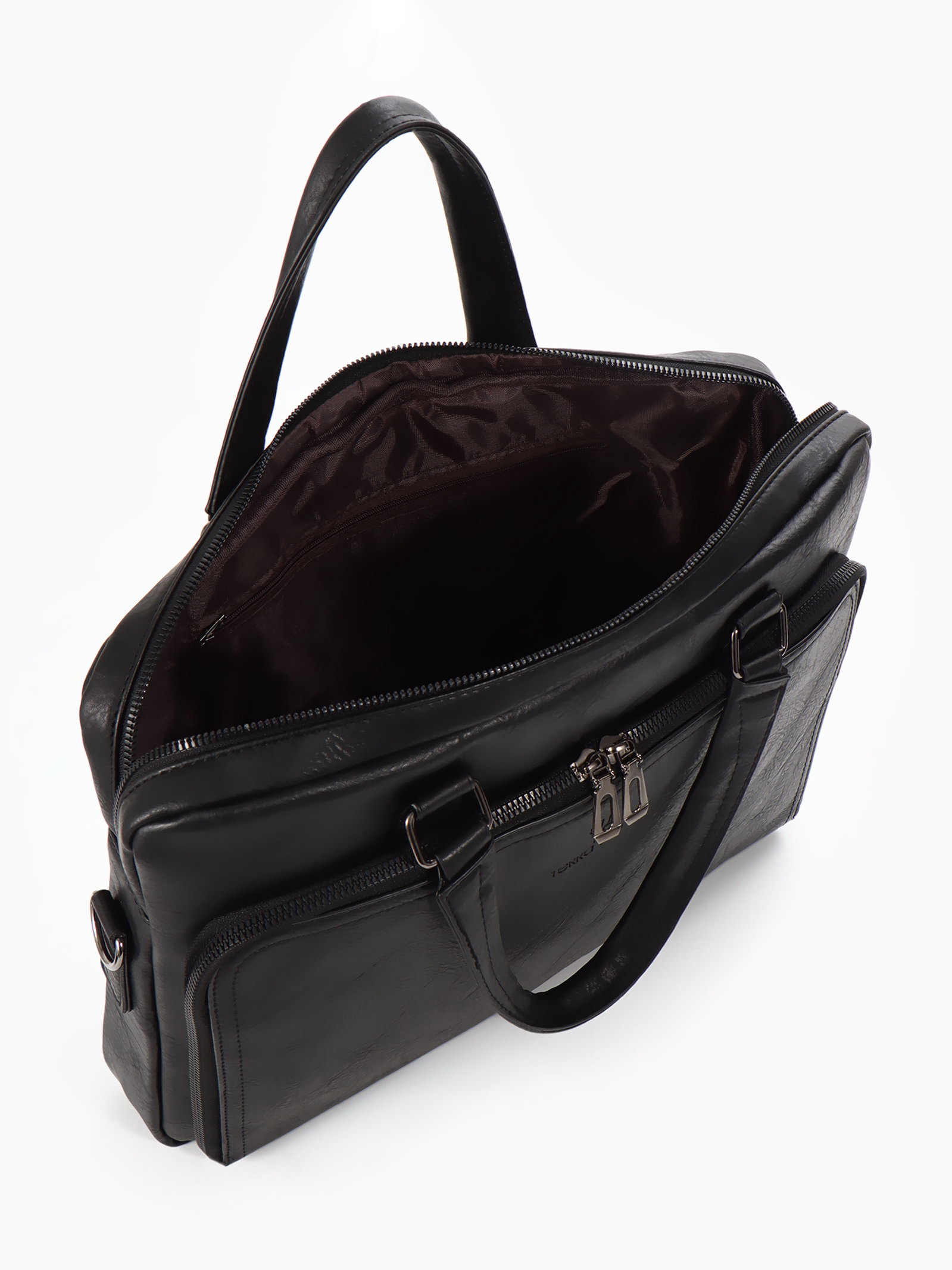 Сумка деловая, мужская, на молнии, длинный ремень, 38x8x29 см, чёрная, 8x38x29 см., Terra Dever, Китай