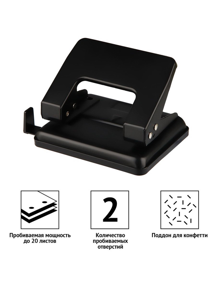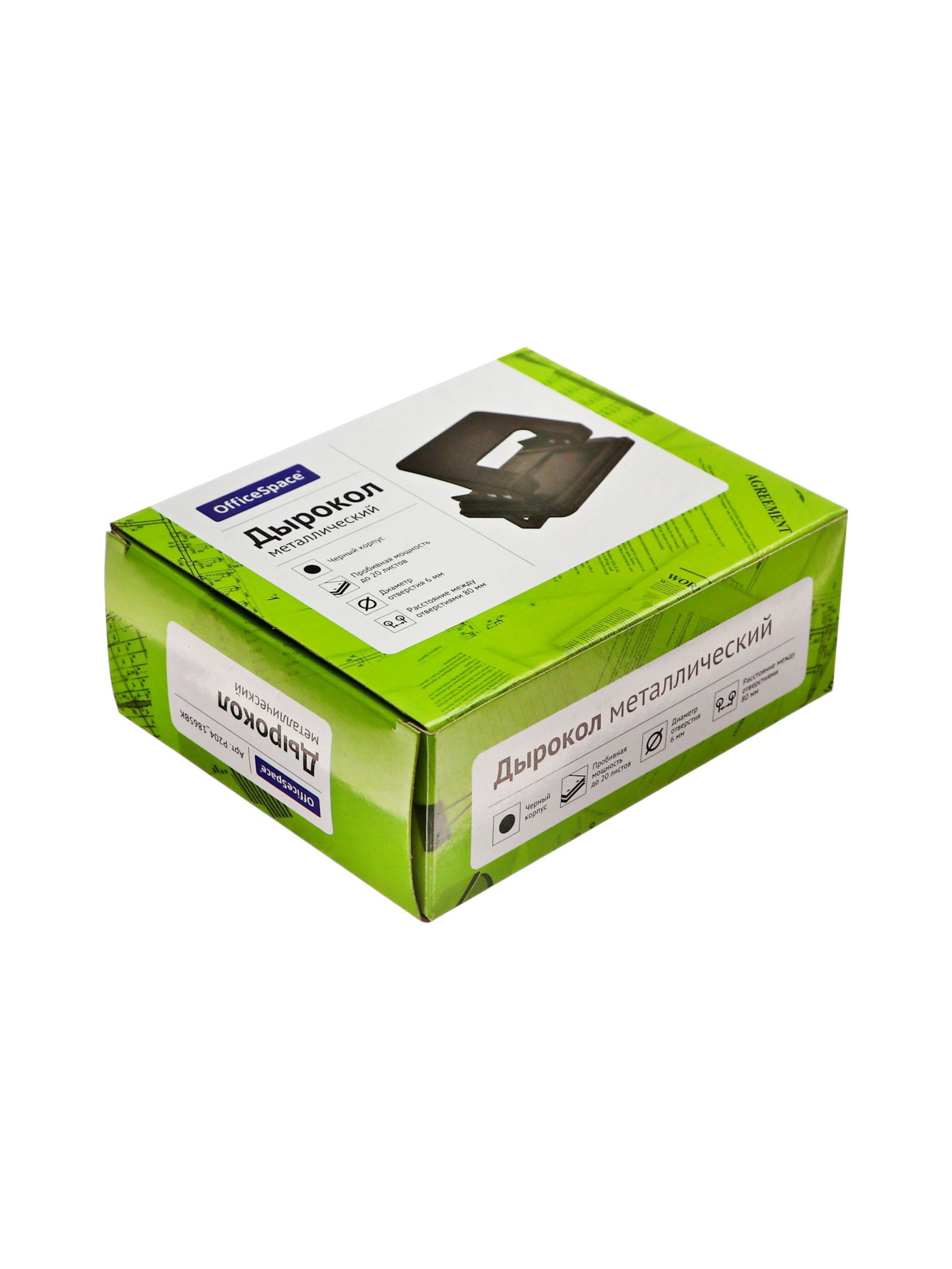 Дырокол металлический, 20 листов, линейка, черный, OfficeSpace, Китай