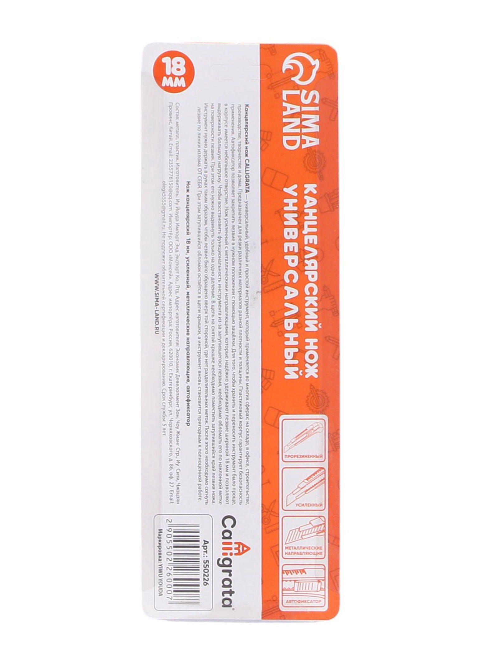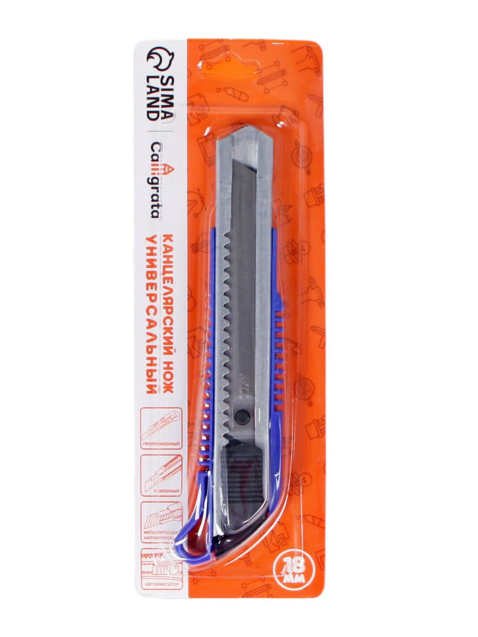 Нож канцелярский с лезвием 18 мм, с металлическими направляющими, с фиксатором, МИКС, 3.5x4x15.5 см., Calligrata, Китай