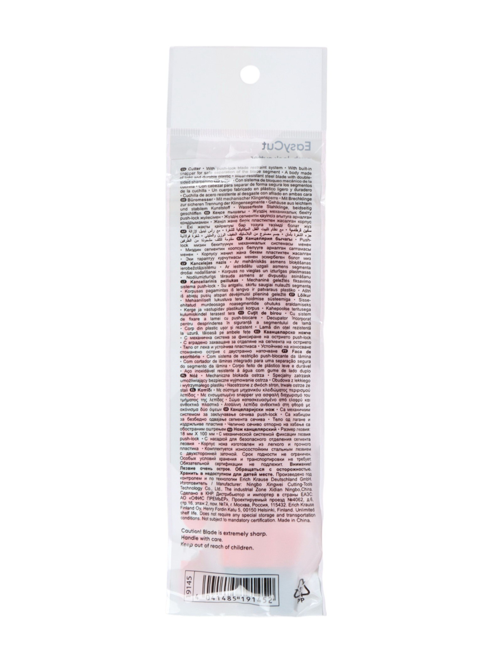 Нож канцелярский 18 мм, Standart, с системой фиксации лезвия push-lock и насадкой для безопасного отделения сегмента лезвия, МИКС, 7x0.4x24 см., ErichKrause, Китай