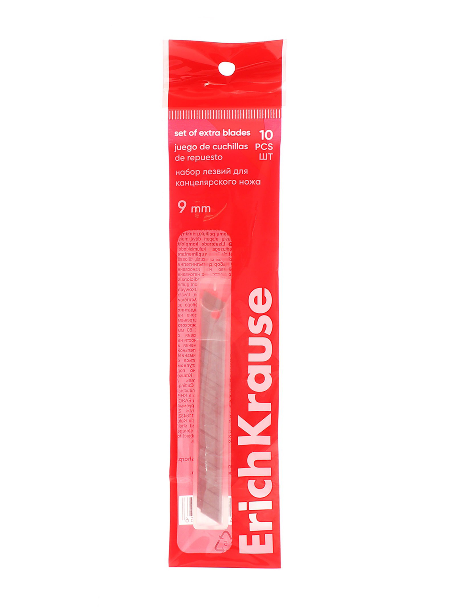 Лезвия для канцелярского ножа 9 мм, 10 шт., Erich Krause, в пластиковом контейнере, 4.5x20.8x0.6 см., ErichKrause, Китай