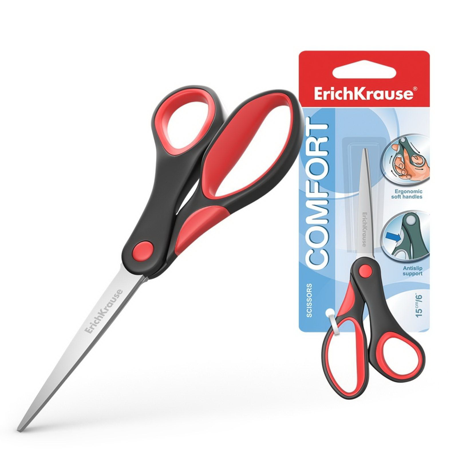 Ножницы Comfort, 15 см, ручки с противоскользящими резиновыми вставками, МИКС, 7x0.5x19 см., ErichKrause, Китай
