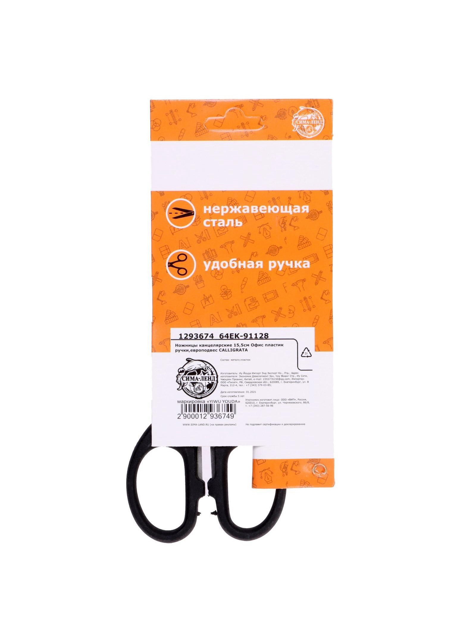 Ножницы канцелярские 15.5 см, "Офис", пластиковые ручки, европодвес, 6x0.8x15.5 см., Calligrata, Китай