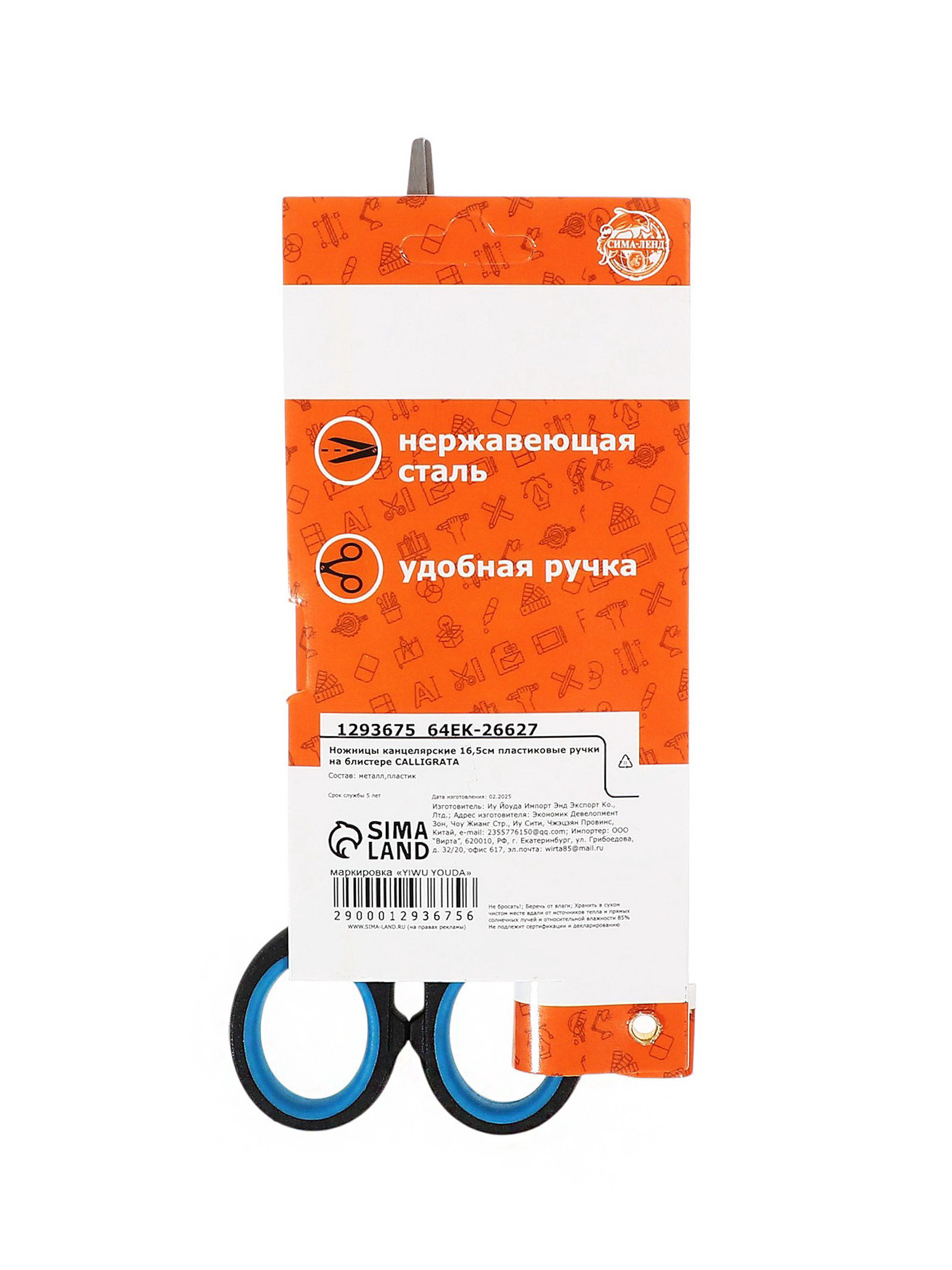 Ножницы канцелярские 16.5 см, "Стандарт", пластиковые ручки, европодвес, 7.5x1x16.5 см., Calligrata, Китай