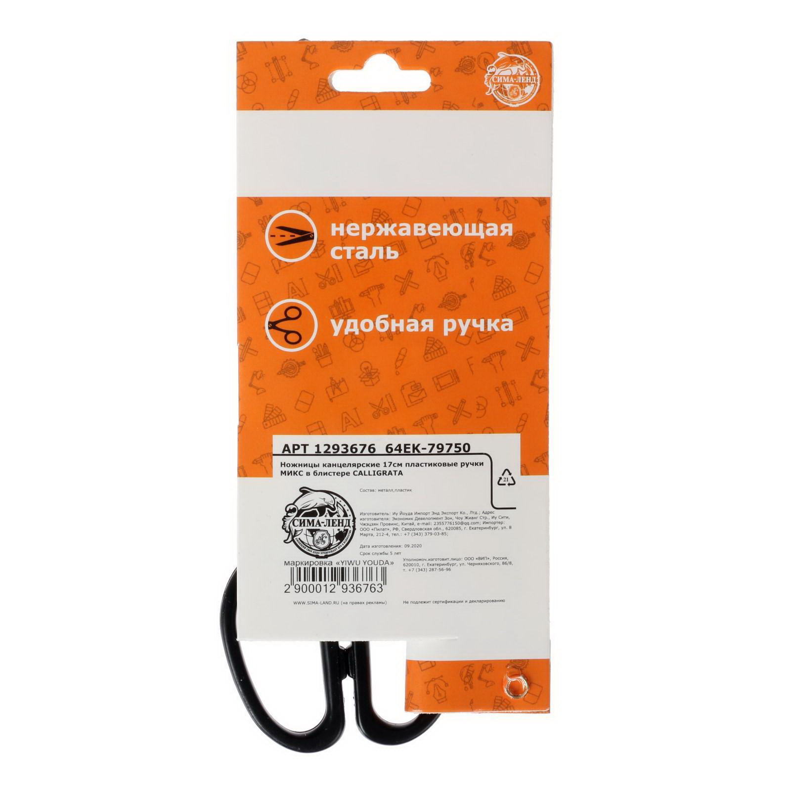 Ножницы канцелярские 17 см, пластиковые ручки, в блистере, 5.8x1x17 см., Calligrata, Китай