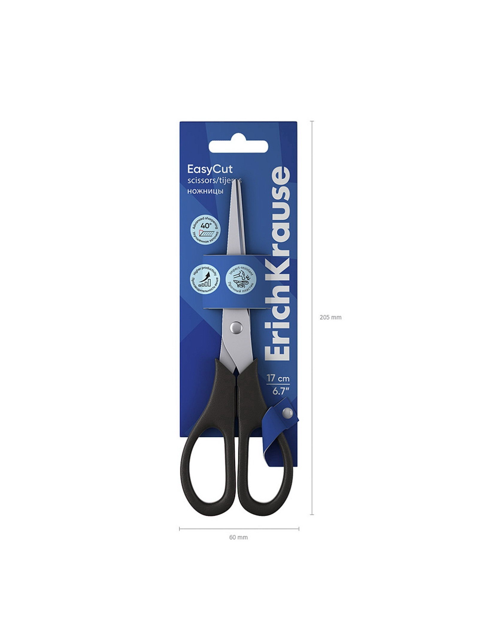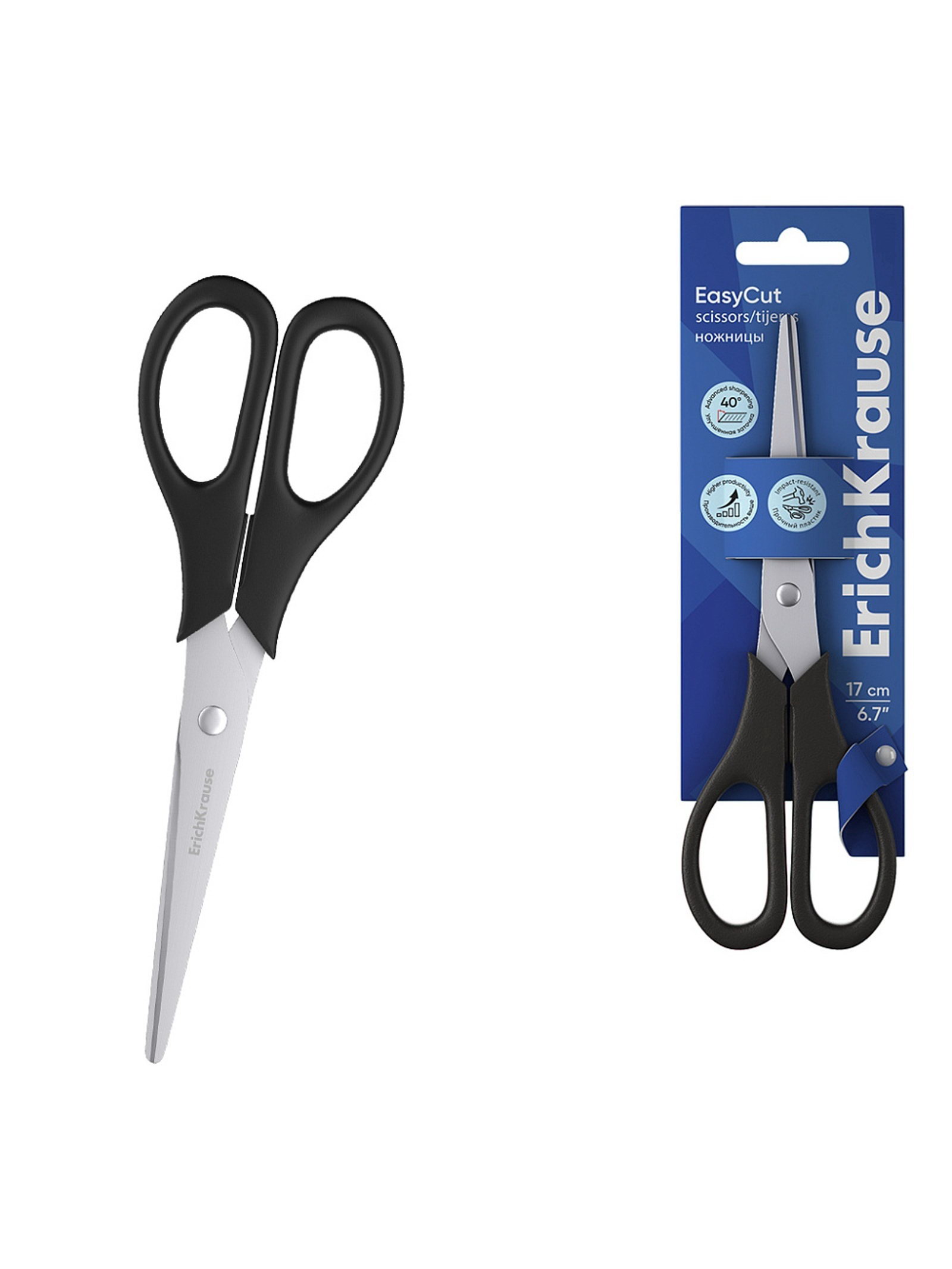 Ножницы Standard, 17 см, с улучшенной двойной заточкой, лезвия из нержавеющей стали, чёрные, 2x18x5 см., ErichKrause, Китай