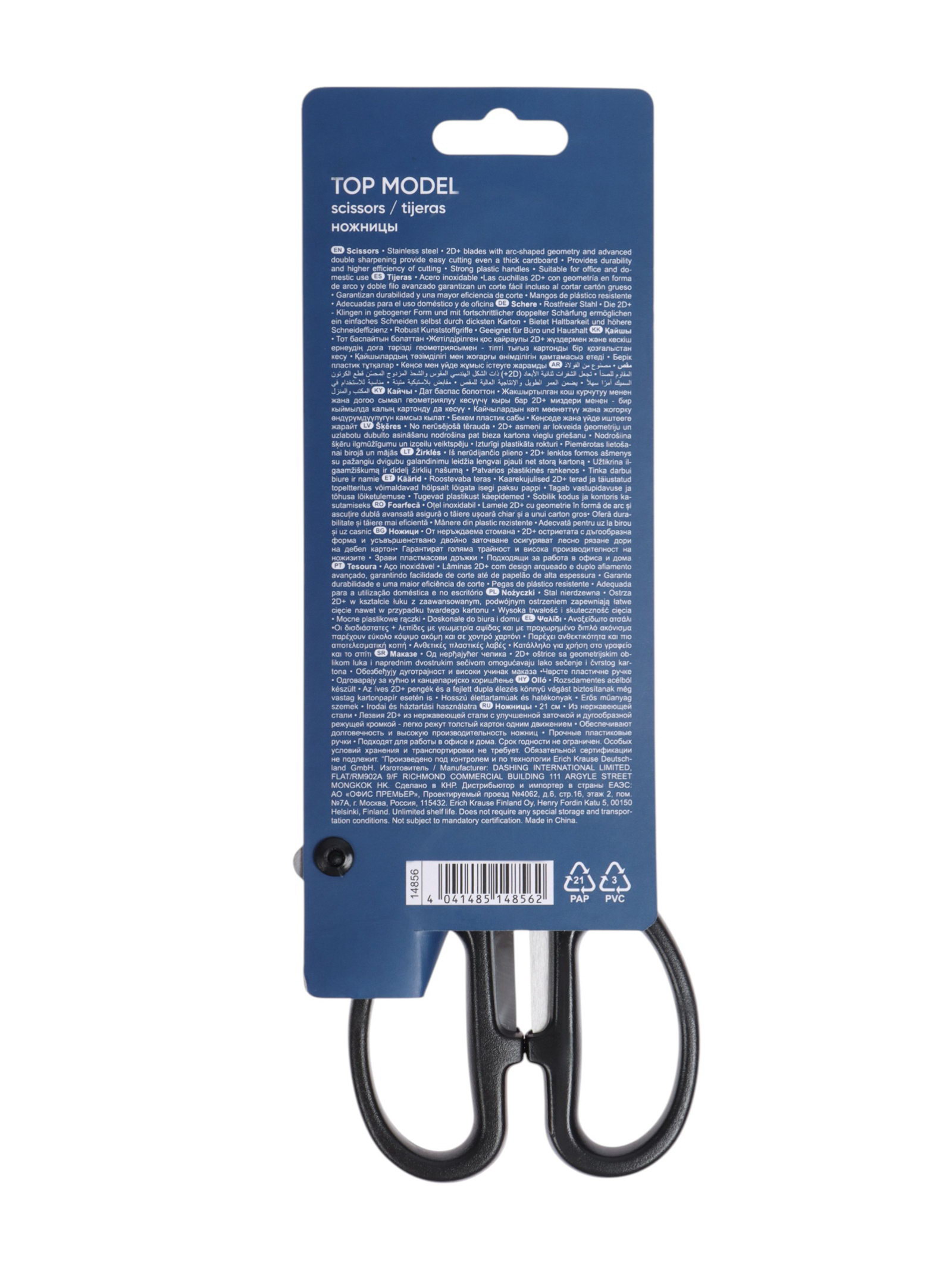 Ножницы Top Model, 21 см, блистер, увеличенная толщина лезвий, чёрные, 8x1x25 см., ErichKrause, Китай
