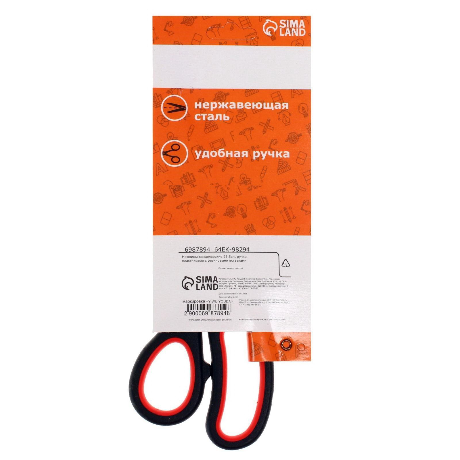Ножницы канцелярские 23.5 см, ручки пластиковые с резиновыми вставками, 1x23.5x7.5 см., Calligrata, Китай