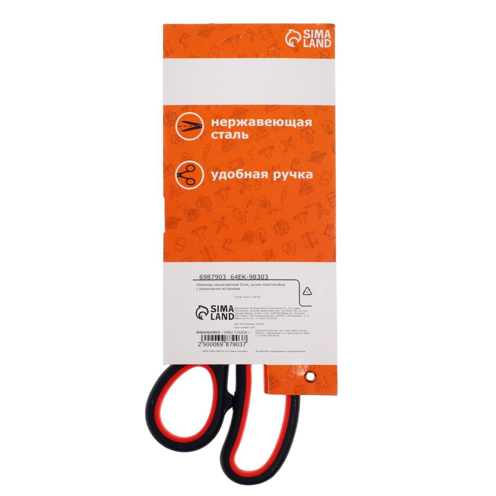 Ножницы канцелярские 21 см, ручки пластиковые с резиновыми вставками, 1x21x7.5 см., Calligrata, Китай