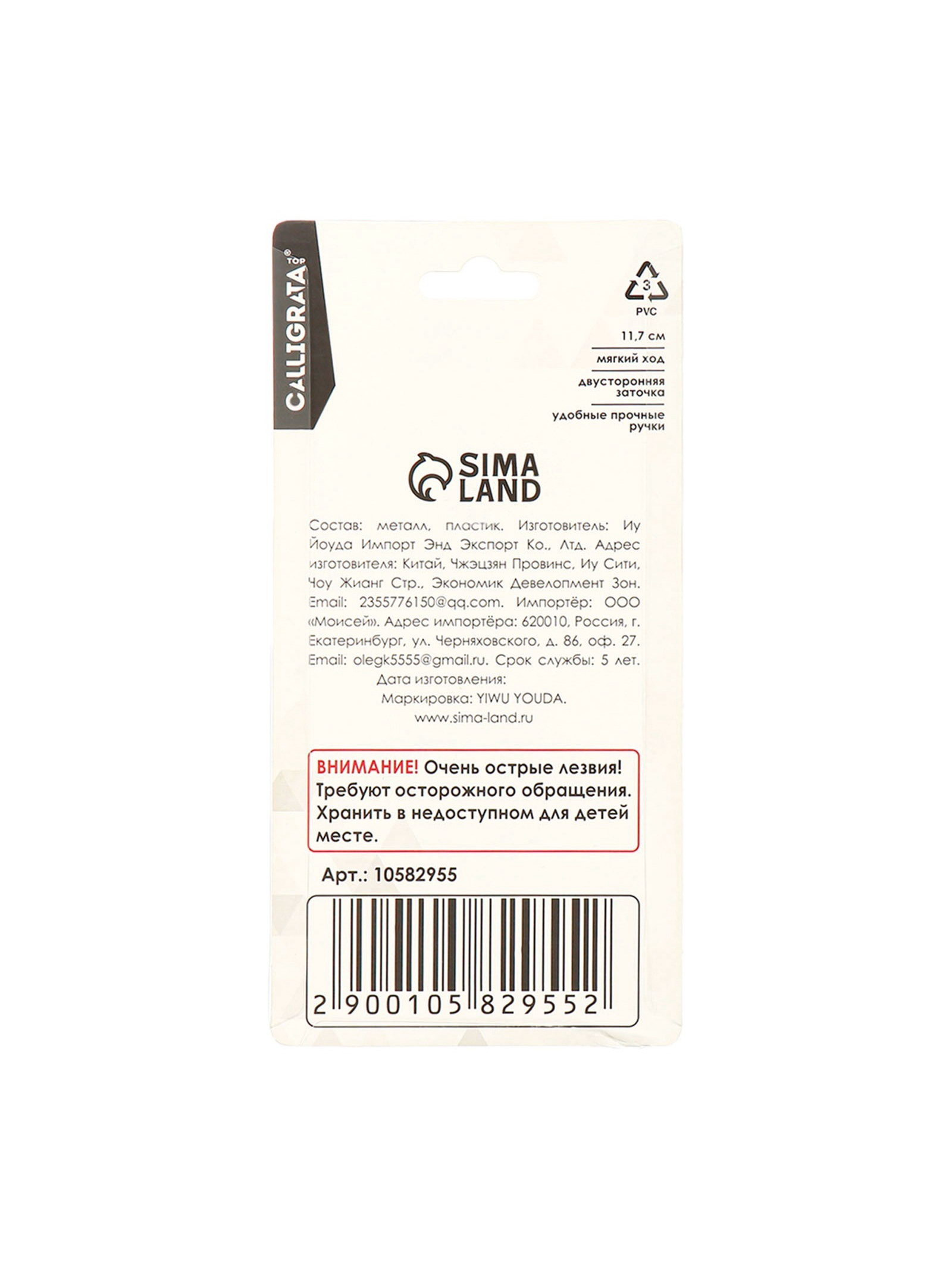 Ножницы канцелярские 11.7 см, Офис, пластиковые ручки, европодвес, 6.7x11.5x0.9 см., Calligrata TOP, Китай