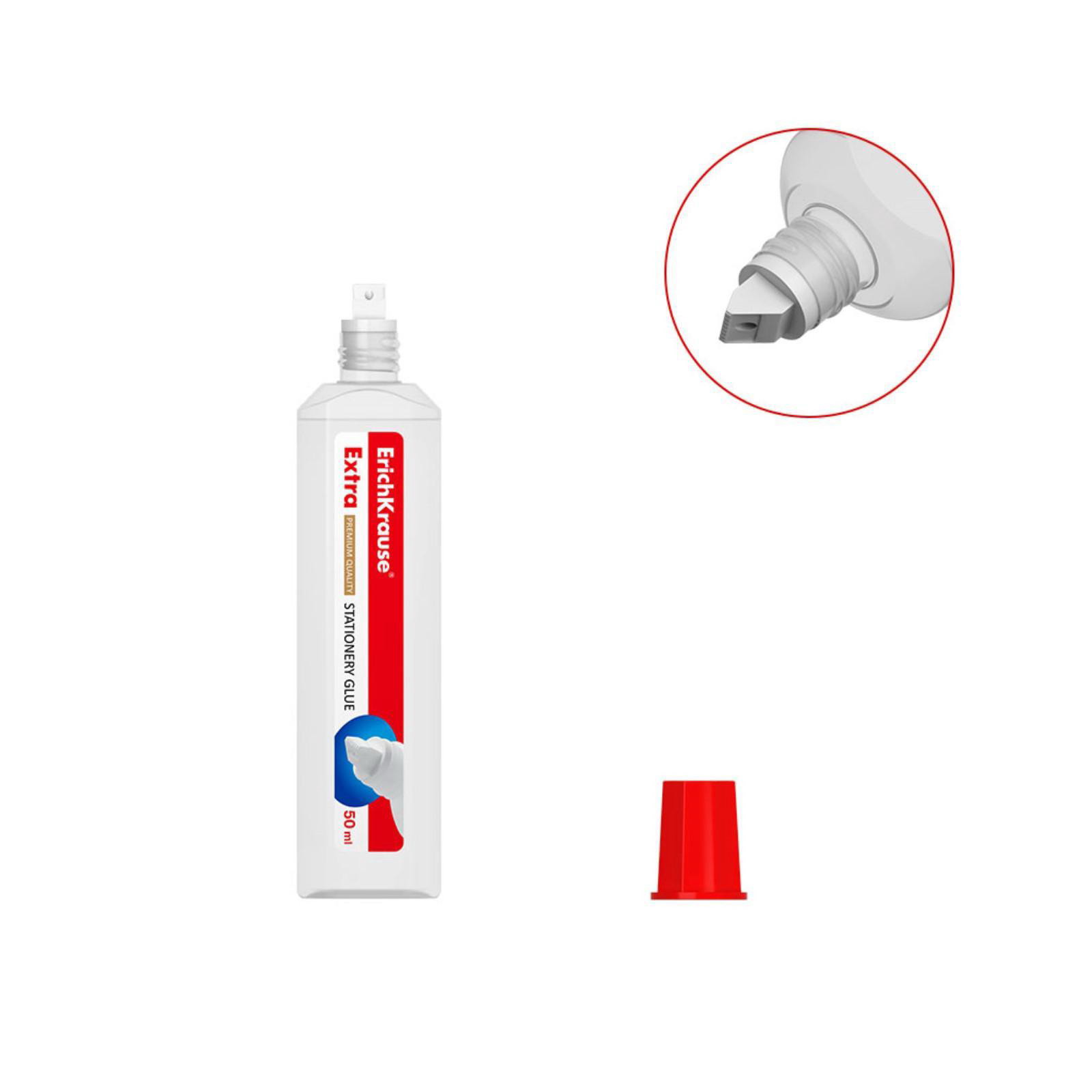 Клей канцелярский 50 мл, с пластиковым аппликатором, подходит для бумаги, картона и ткани, морозостойкий, 3x12x3 см., ErichKrause, Малайзия