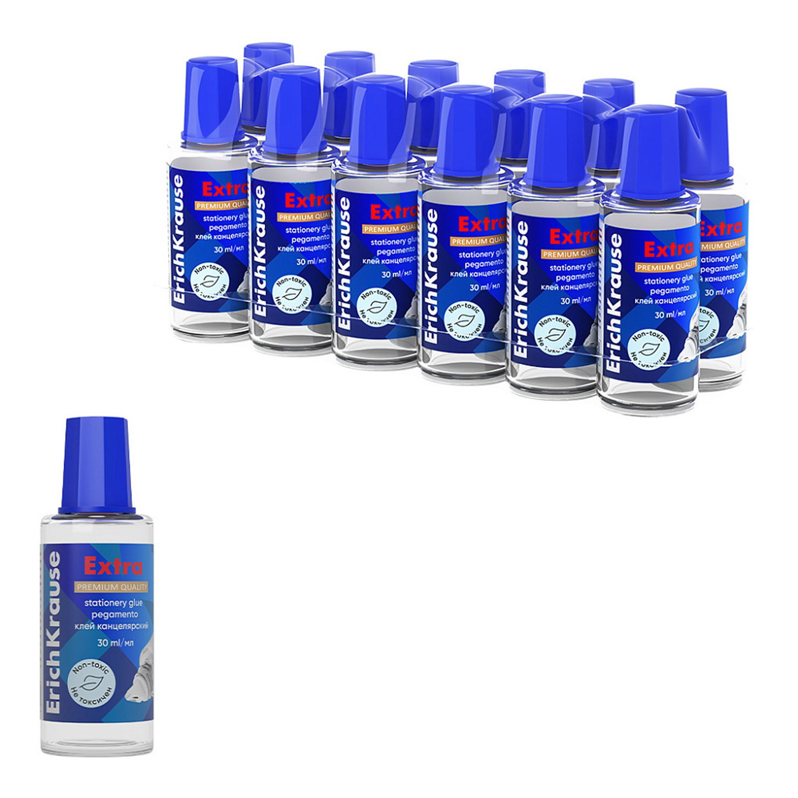 Клей канцелярский 30 мл, с пластиковым аппликатором, подходит для бумаги, картона и ткани, морозостойкий, 2x10x2 см., ErichKrause, Малайзия