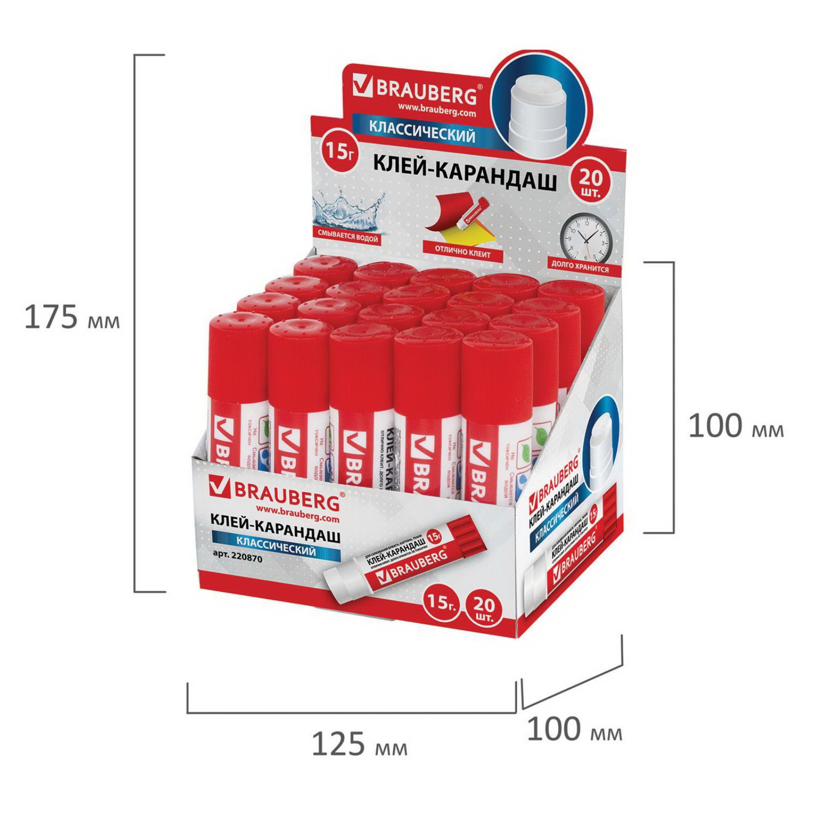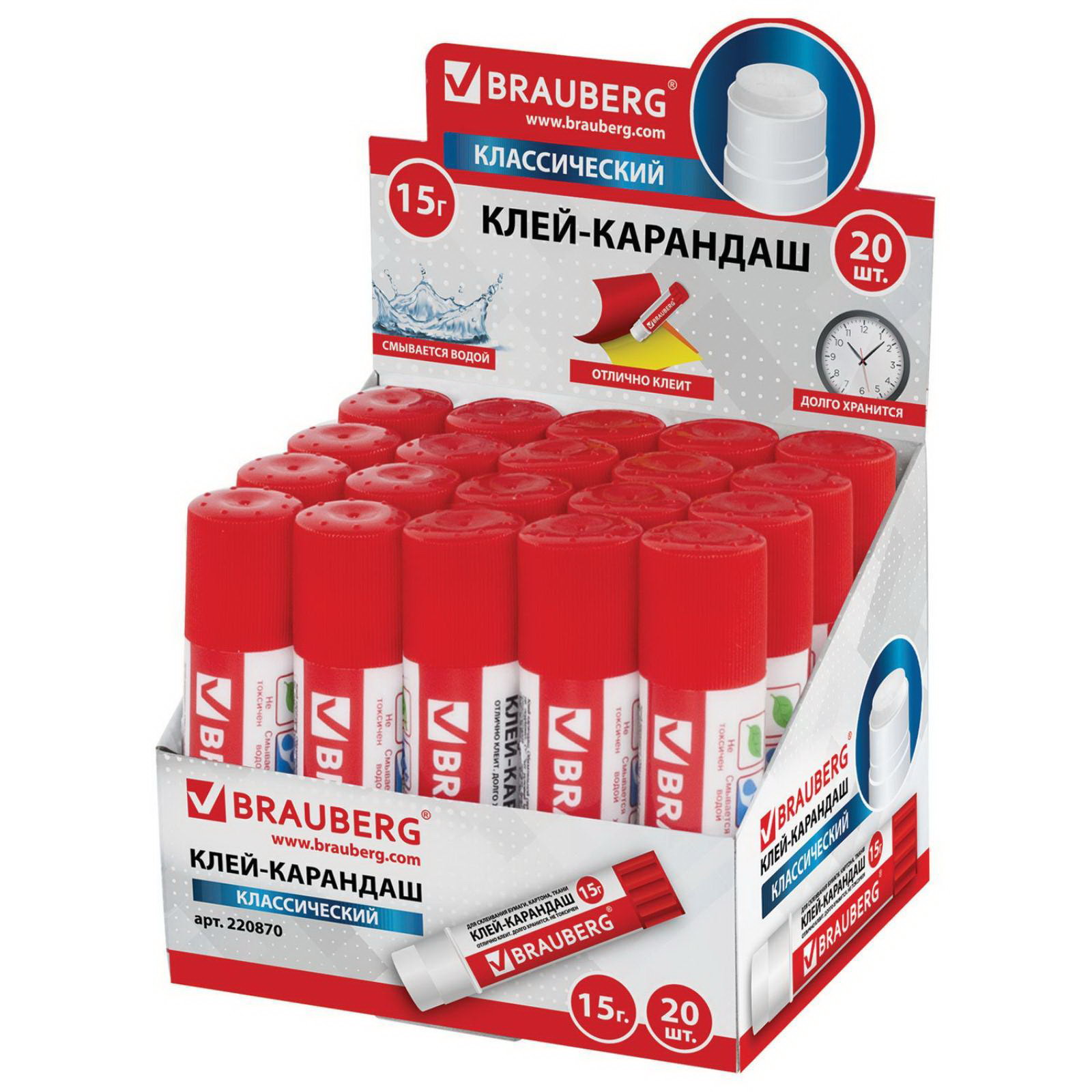Клей-карандаш 15 г, 9x2.4x2.4 см., Brauberg, Китай