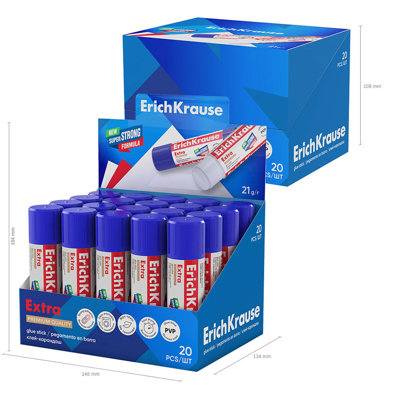 Клей-карандаш, Extra, усиленный, 21 г, 2x12x2 см., ErichKrause, Китай