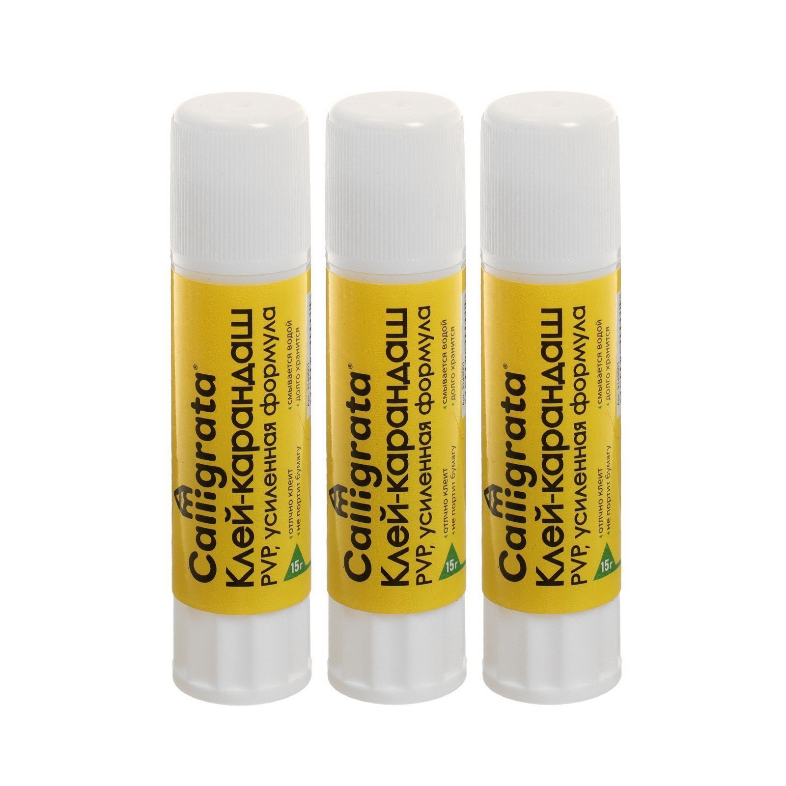 Клей-карандаш 15 грамм PVP усиленная формула, набор 3шт, 2.5x2.5x9 см., Китай