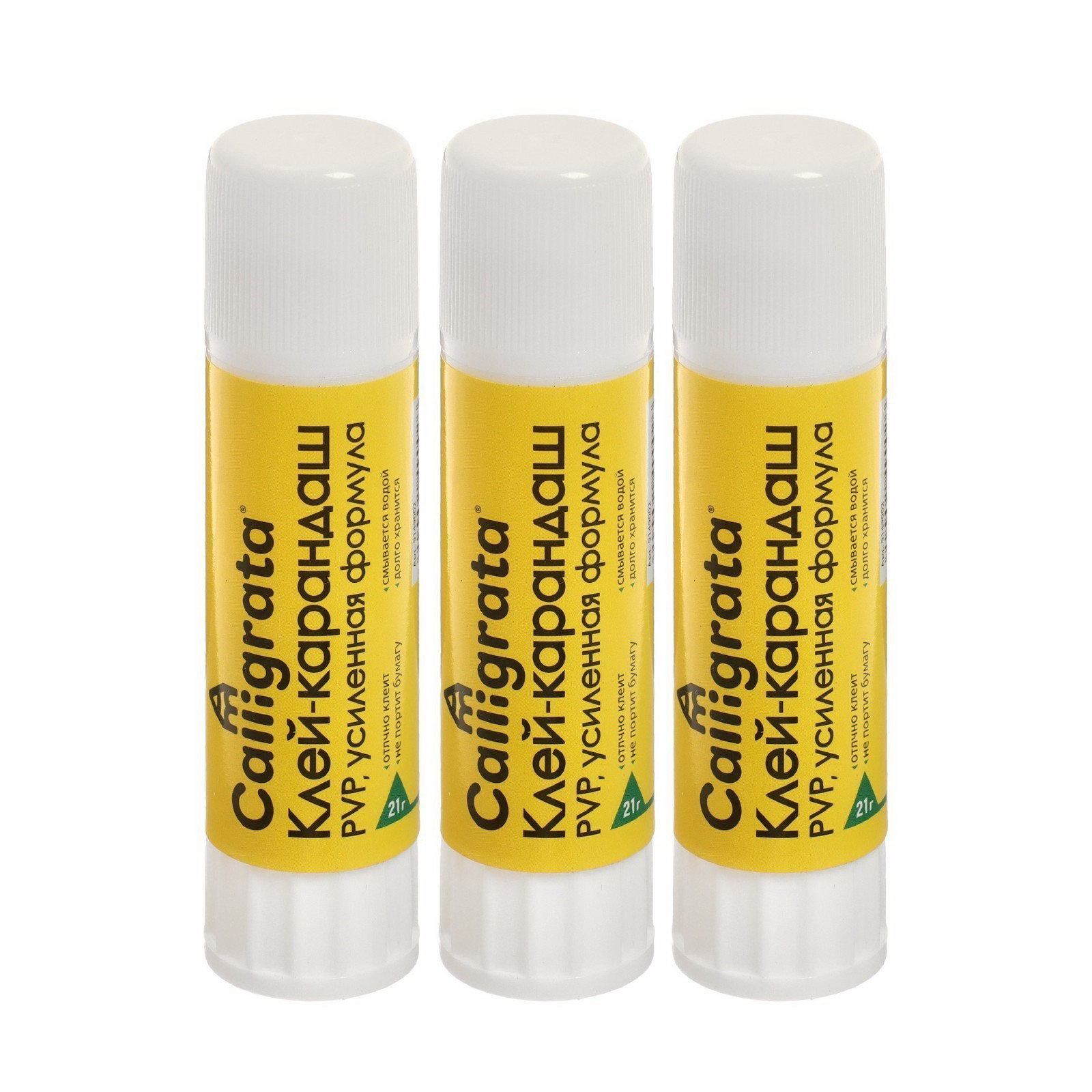 Клей-карандаш 21 грамм PVP усиленная формула, набор 3 шт, 3x3x11 см., Китай