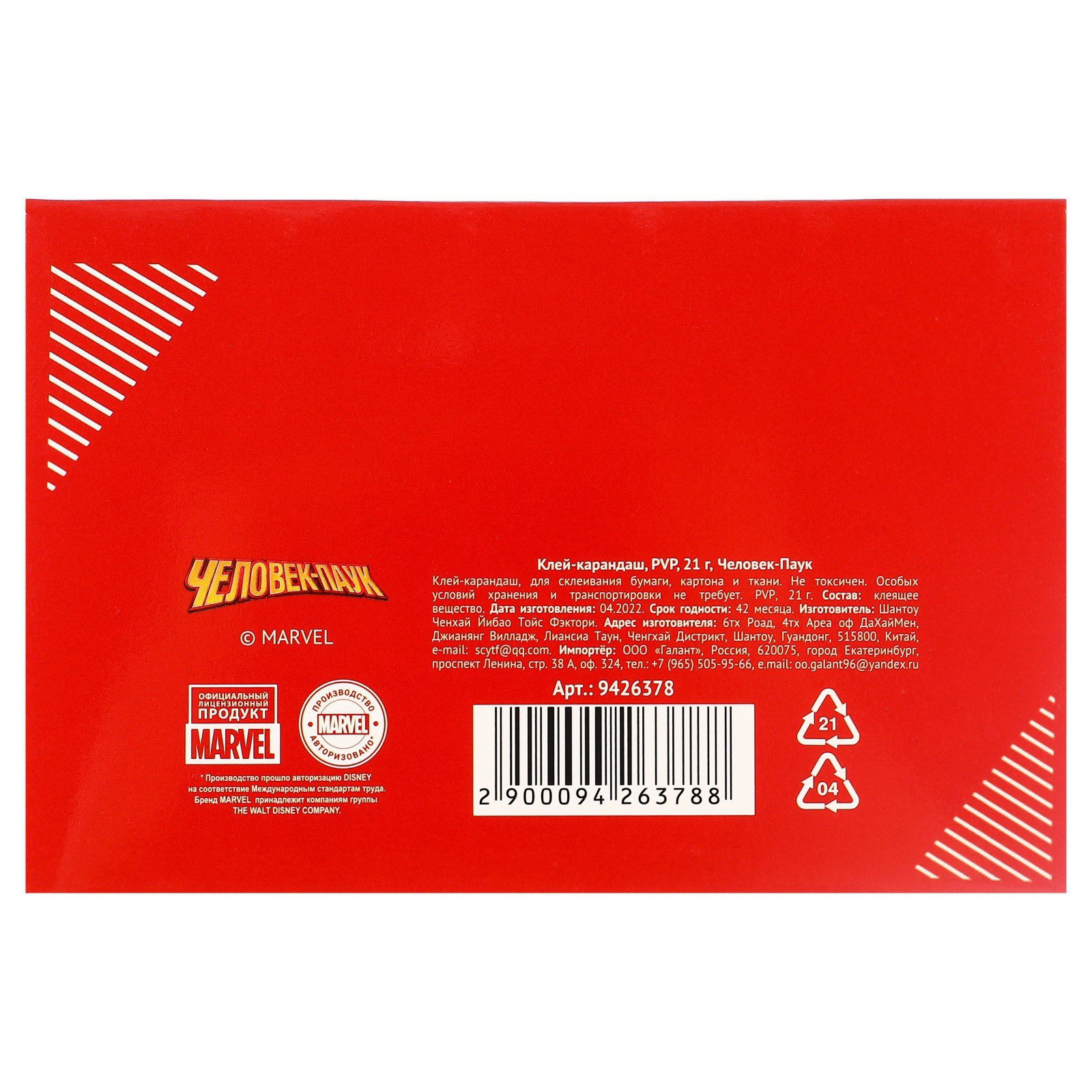 Клей-карандаш PVP 21 г, "Человек-паук", 2.5x2.5x10 см., MARVEL, Китай