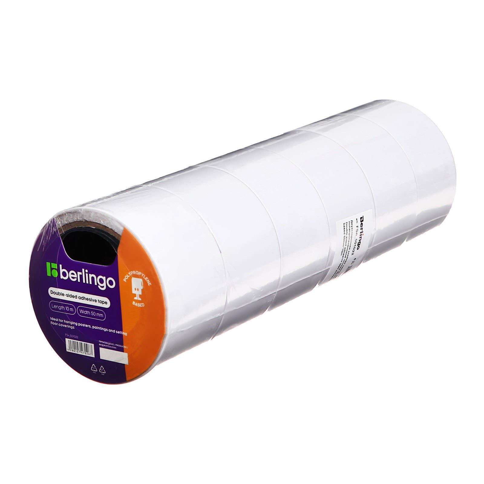 Клейкая лента двусторонняя 50 мм x 10 м, 9x5x9 см., Berlingo, Китай