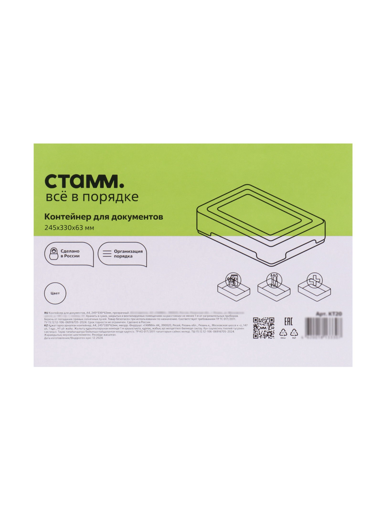 Контейнер для документов А4, 245x330x63 мм, пластик, прозрачный, прочный, вместительный, Стамм, Россия