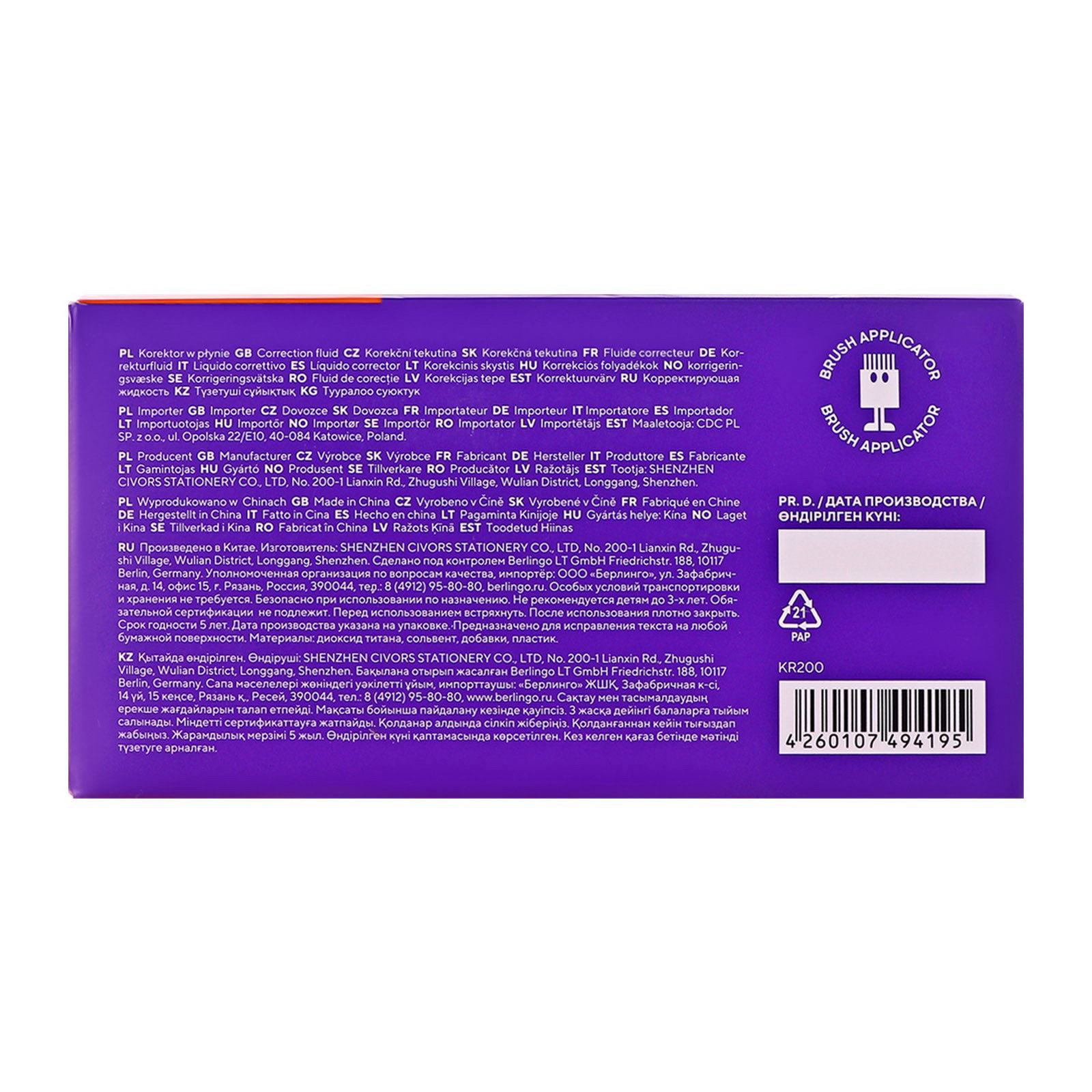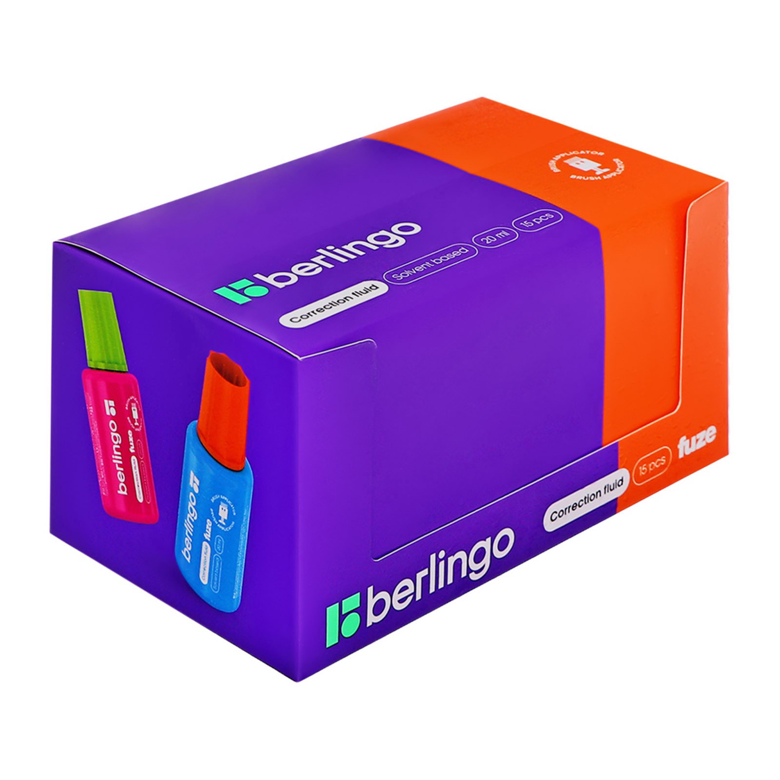Корректирующая жидкость 20 мл Fuze, с кисточкой, 2.7x2.7x7.3 см., Berlingo, Китай