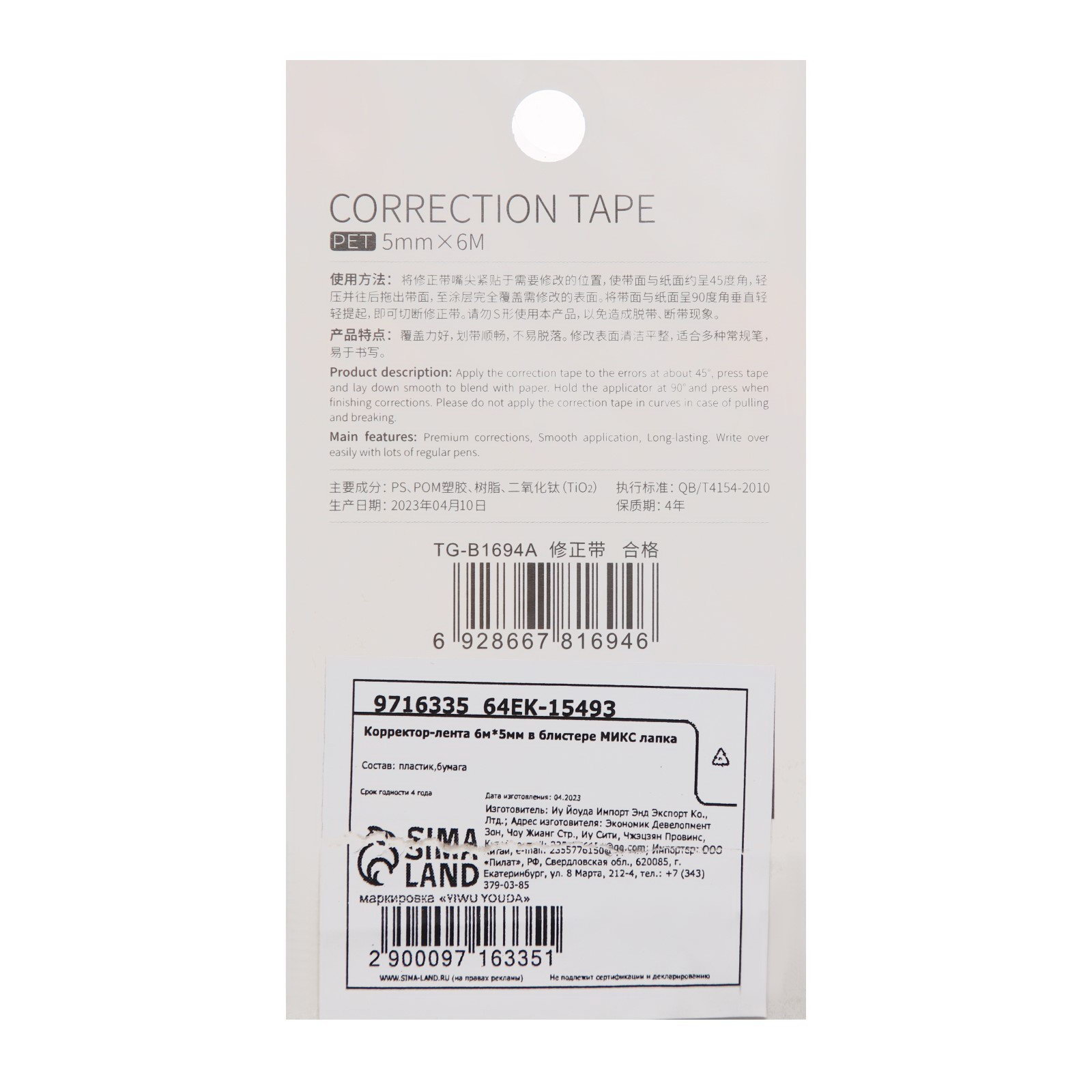 Корректор-лента 6 м x 5 мм, лапка, МИКС, Китай