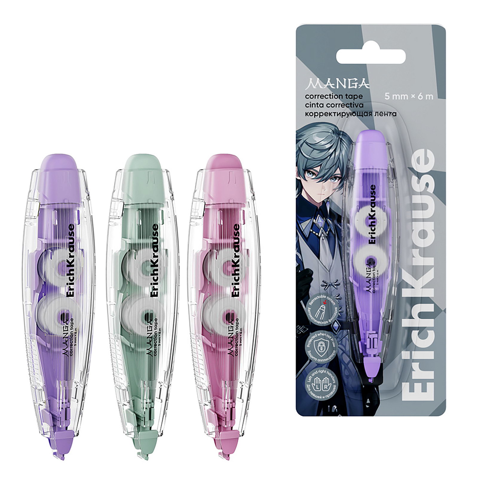 Корректирующая лента 5мм x 6м,"Spin Manga", с автоматической фиксацией аппликатора, микс, 6.4x16.9x2 см., ErichKrause, Китай