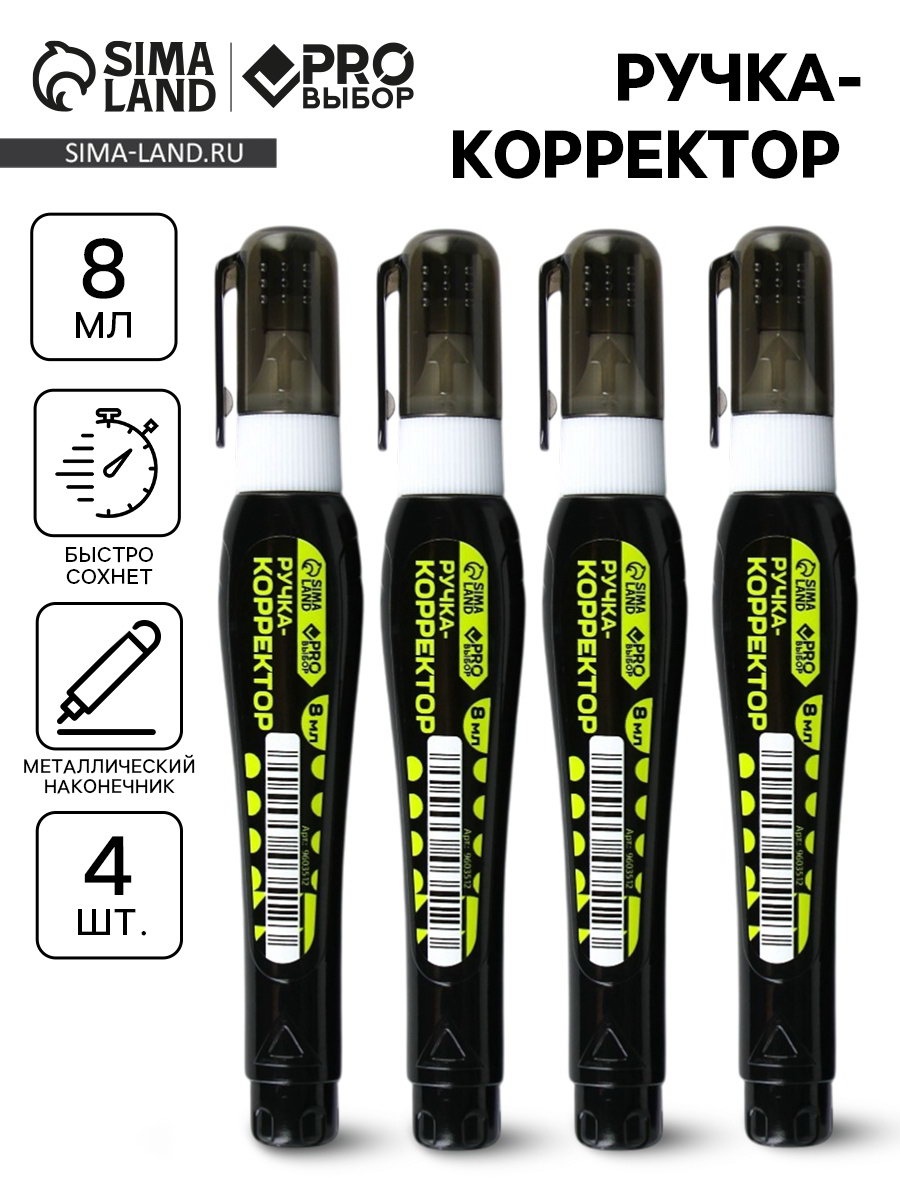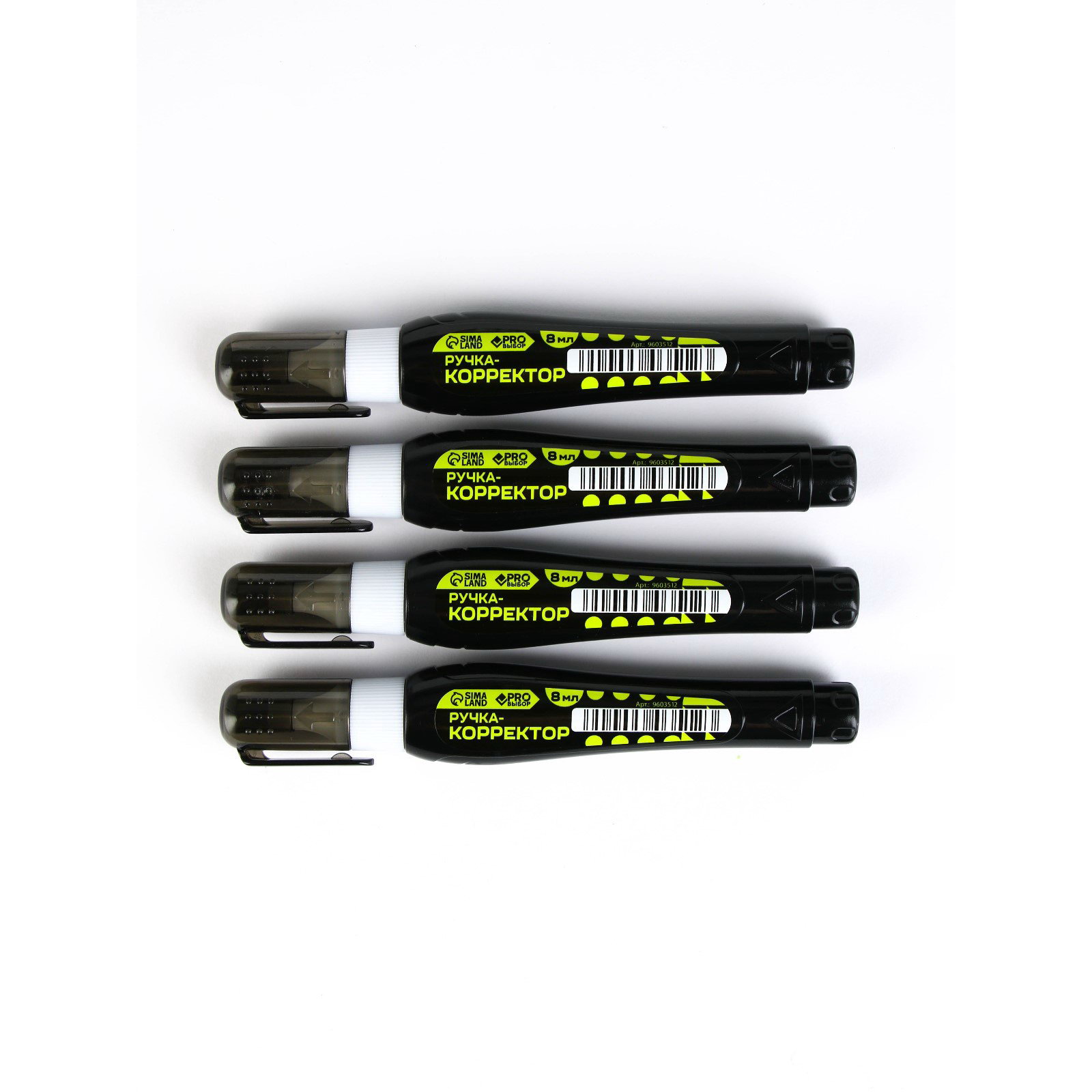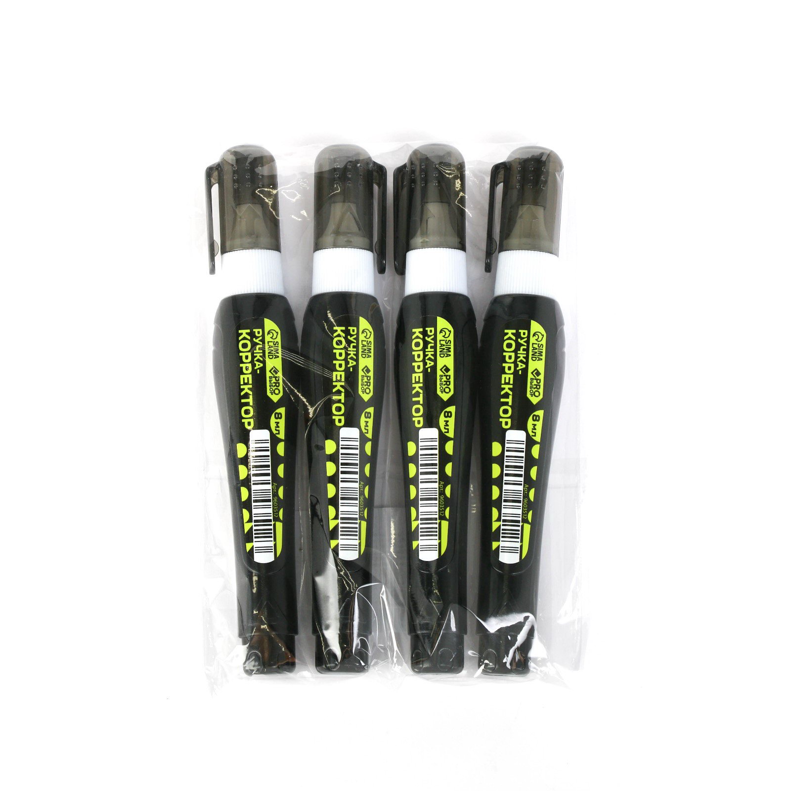 Корректор - ручка, 8 мл, металлический наконечник, набор 4 шт. "Черный неон", 8 мл., PRO Выбор, Китай