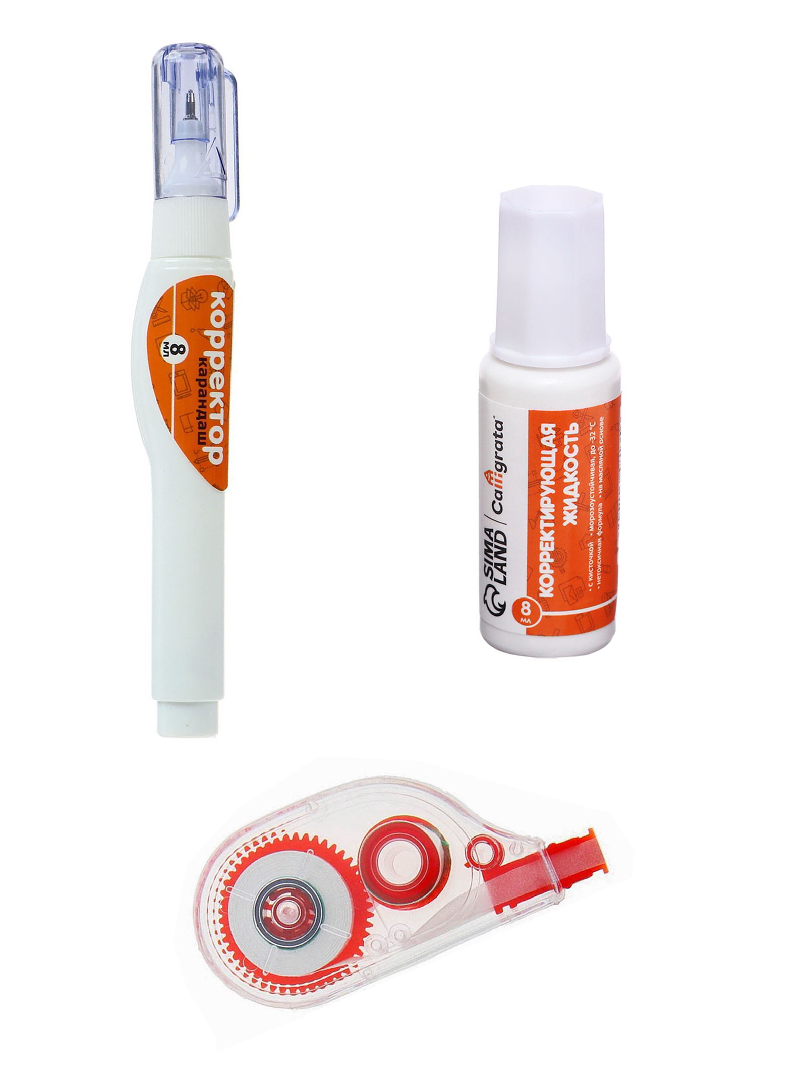 Набор корректоров 3 штуки: лента, с кисточкой, карандаш, 8 мл., Calligrata, Китай