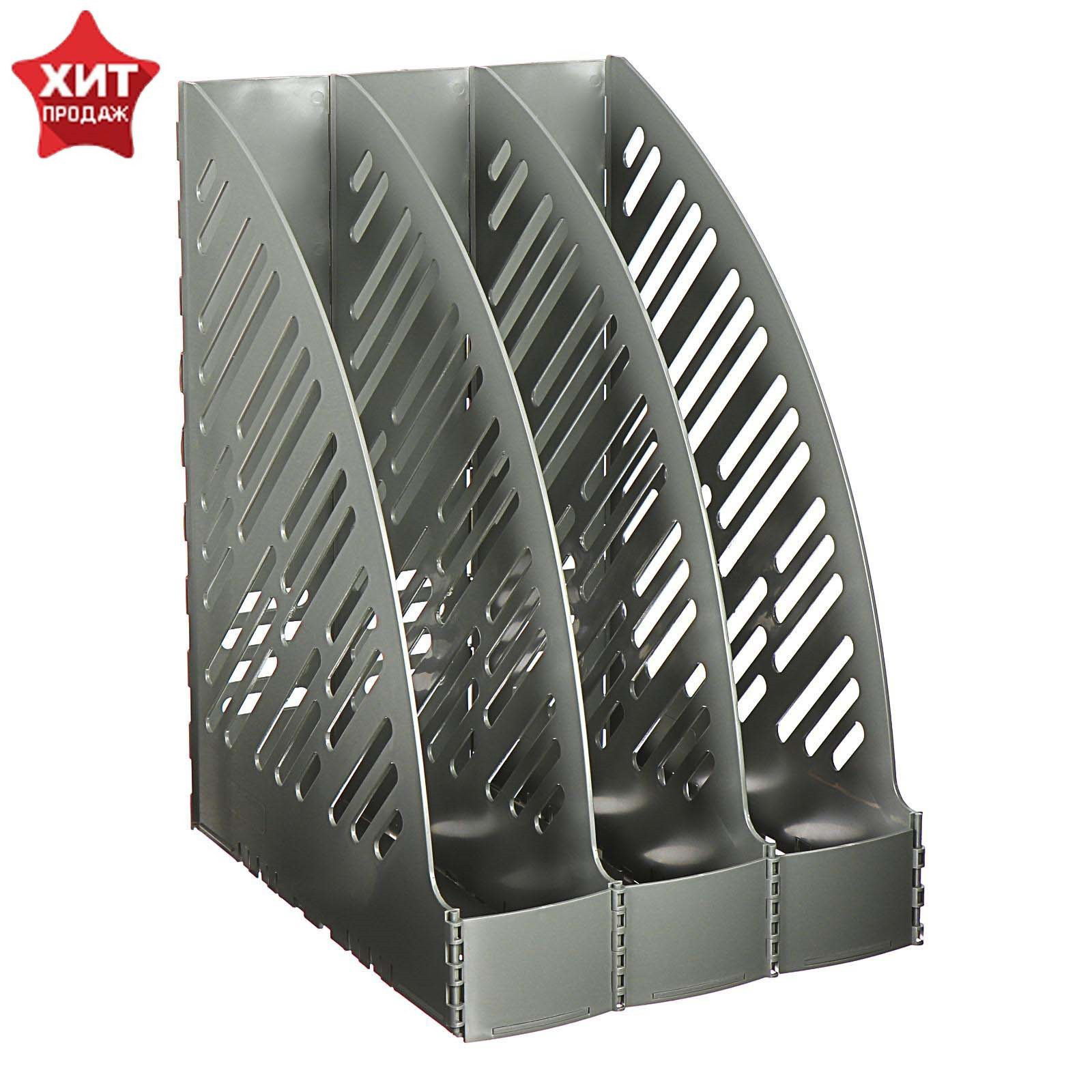 Лоток для бумаг А4, вертикальный, 3 отделения, серый, 25.5x32x7 см., Calligrata, Беларусь