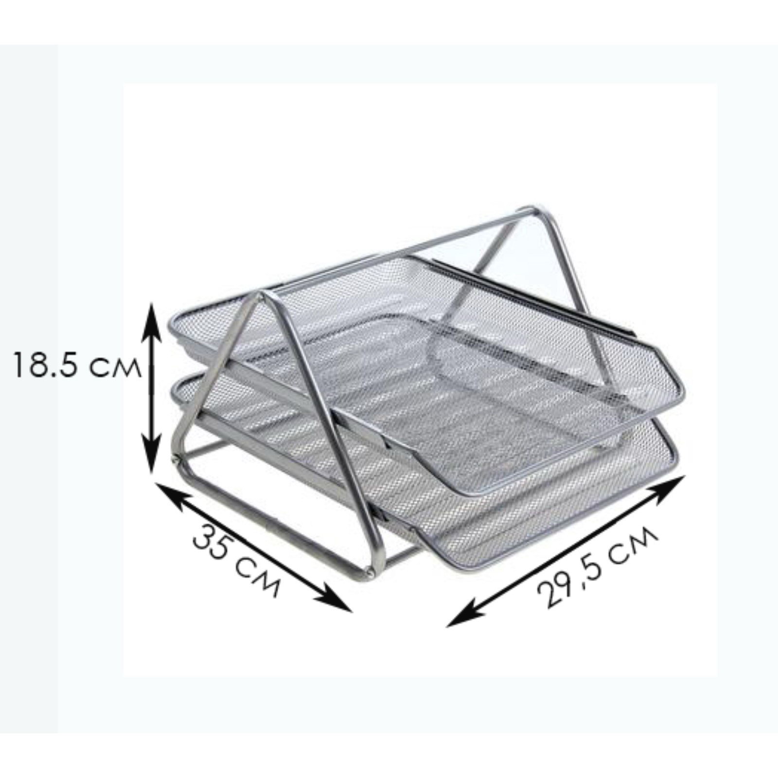 Лоток для бумаг горизонтальный, 2 отделения, металлическая сетка, серый, 29.5x35x18.5 см., Calligrata, Китай