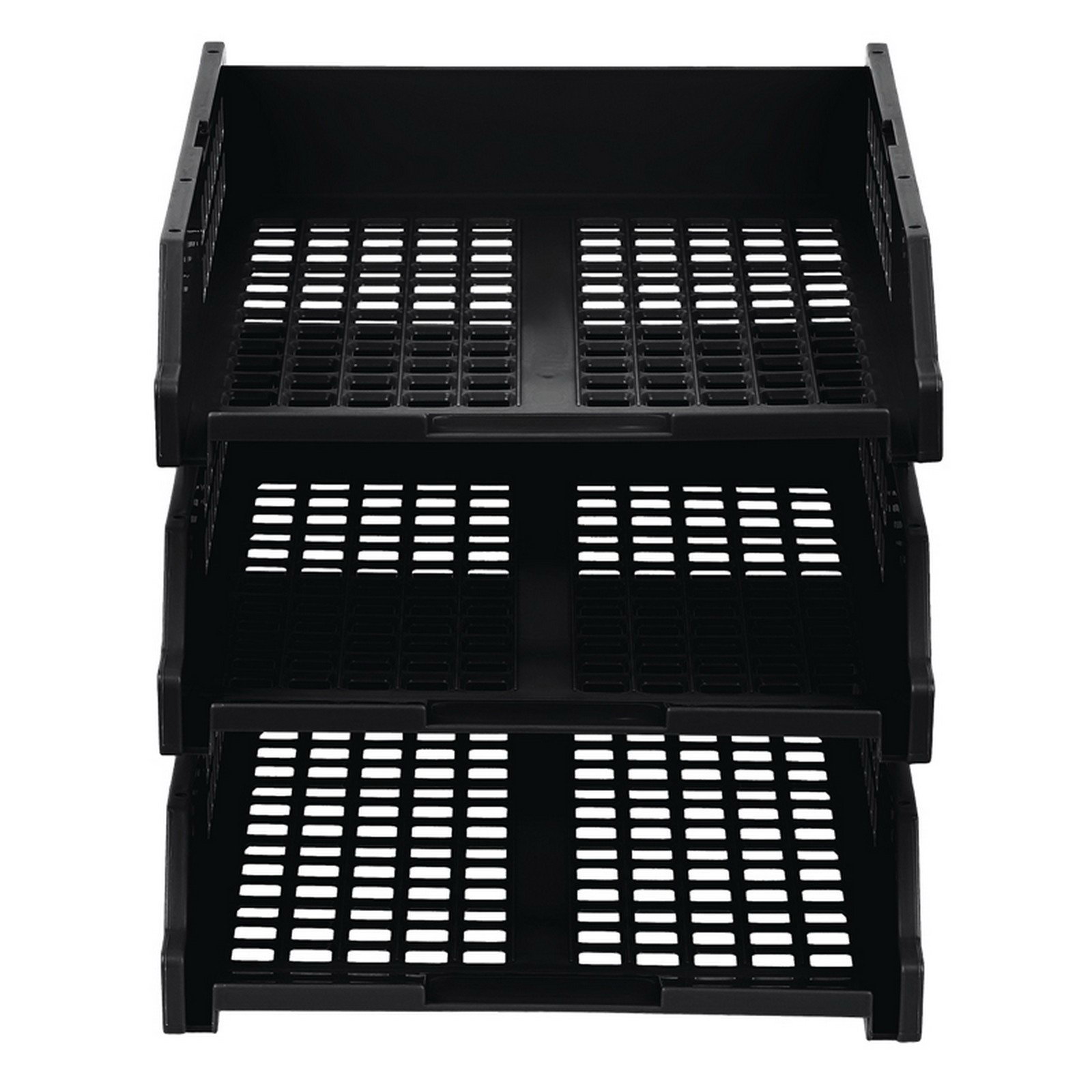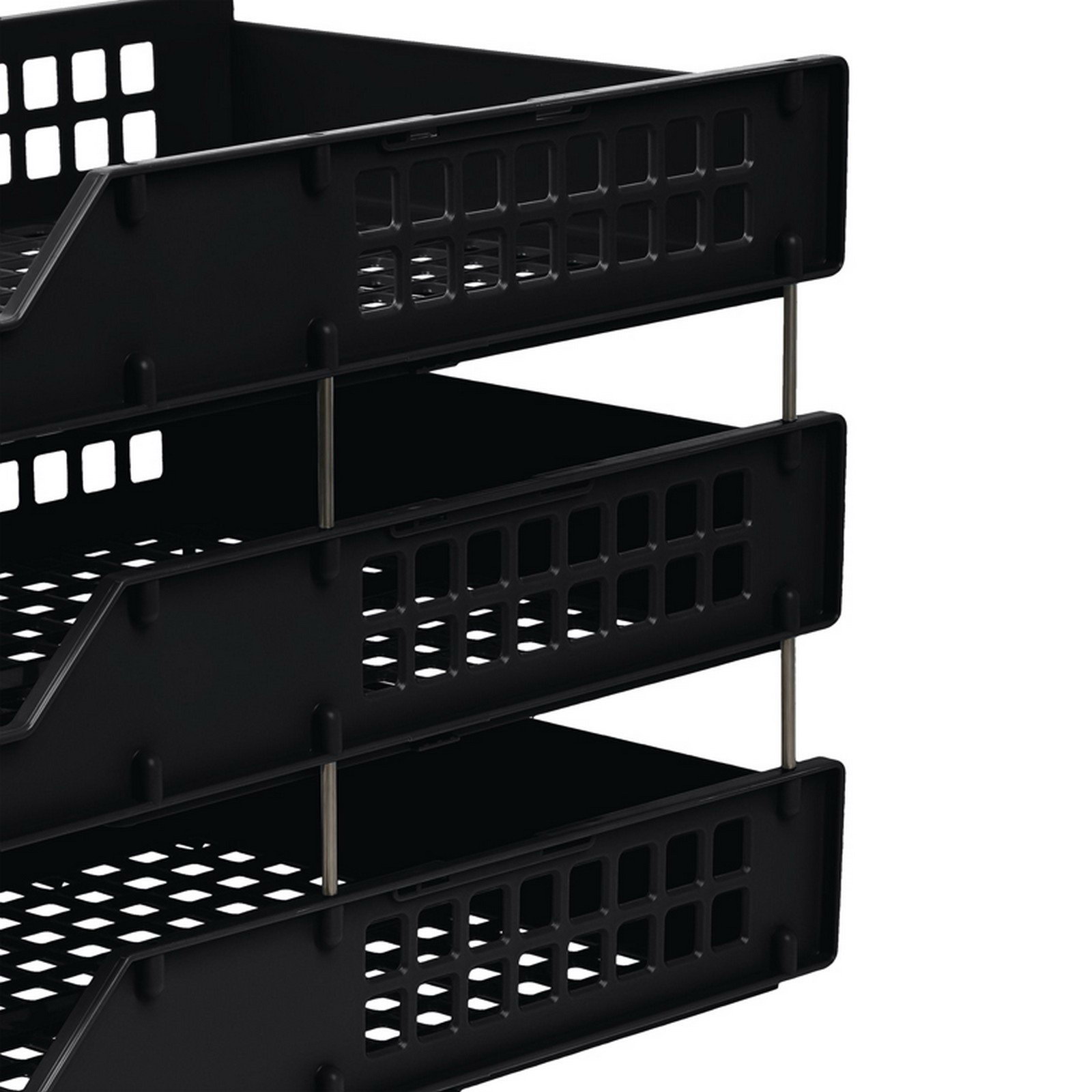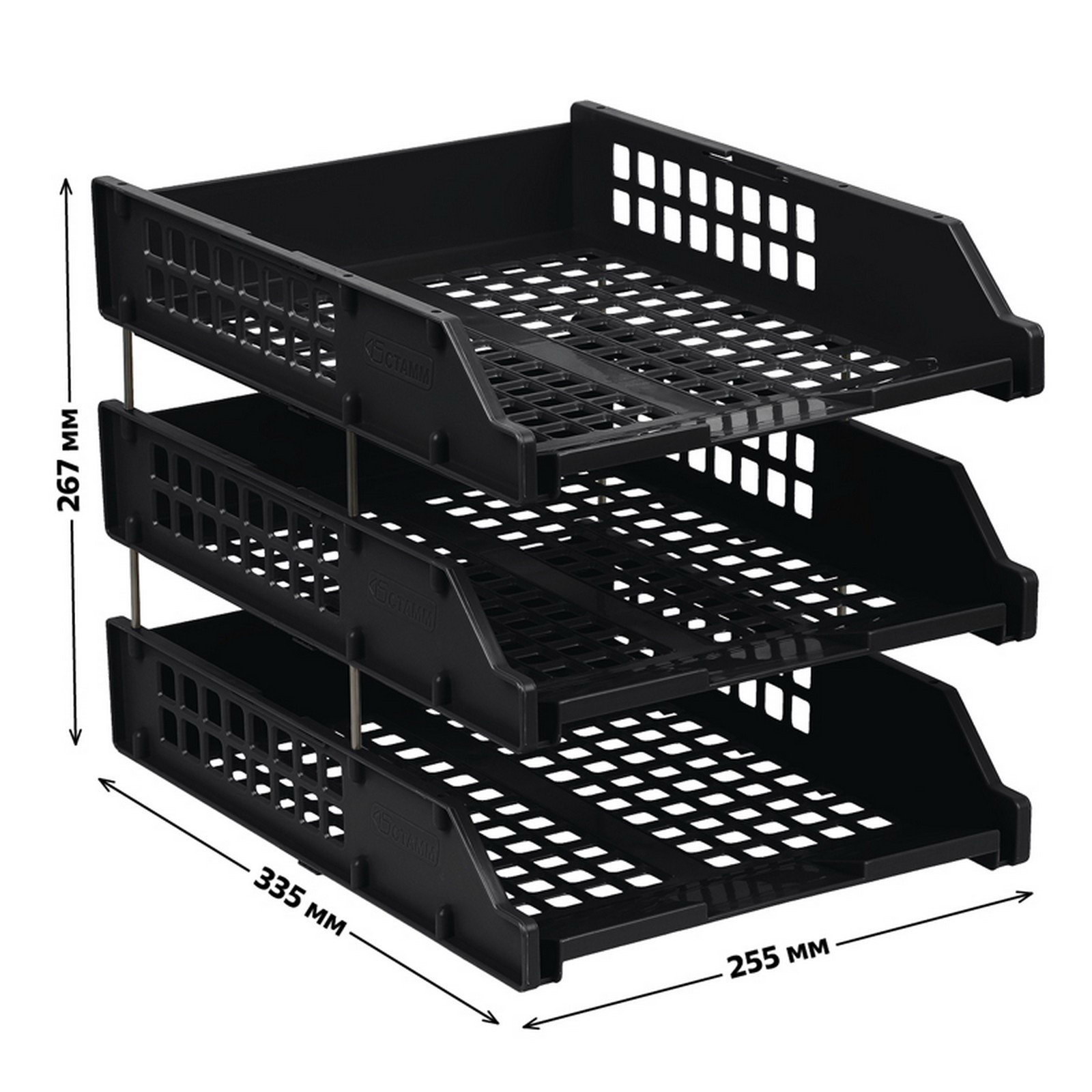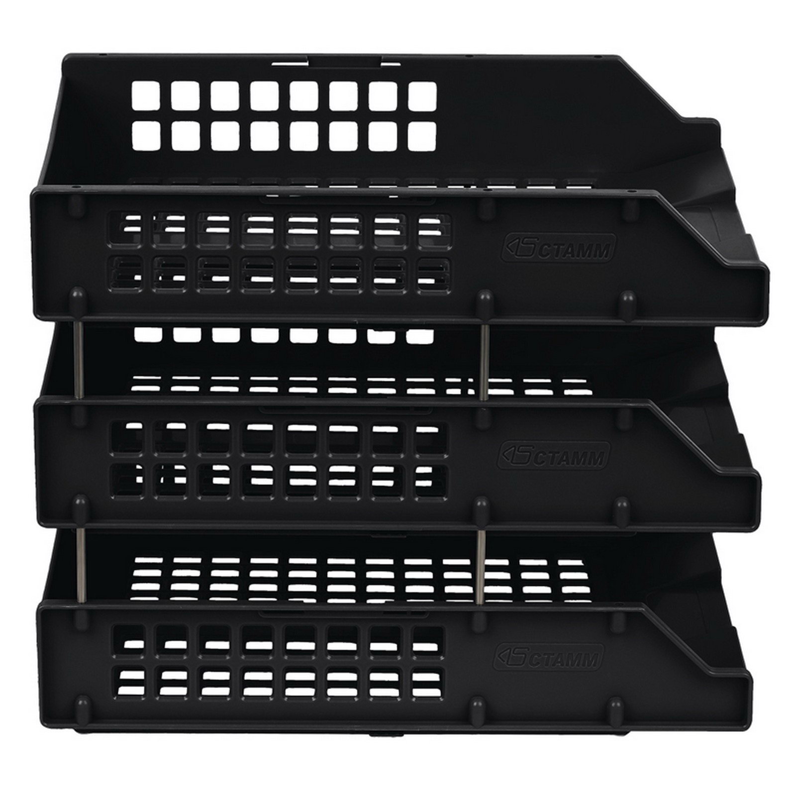 Набор лотков для бумаг горизонтальных STRONG, 3 штуки, на металлических стержнях, чёрный, 26x34x14 см., Стамм, Россия
