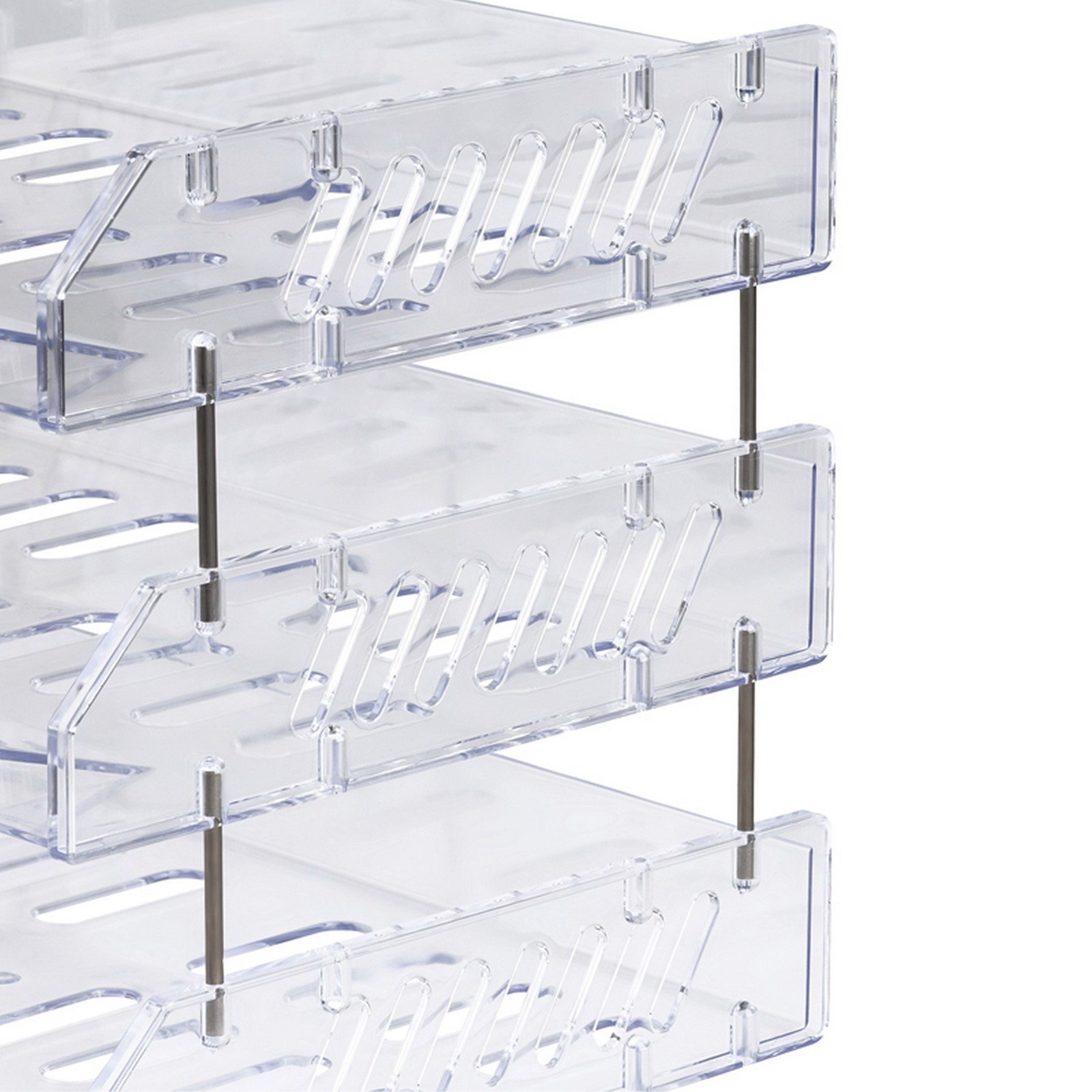 Набор лотков для бумаг "Сити", А4, горизонтальный, на металлических стержнях, 3 отделения, прозрачный, Стамм, Россия