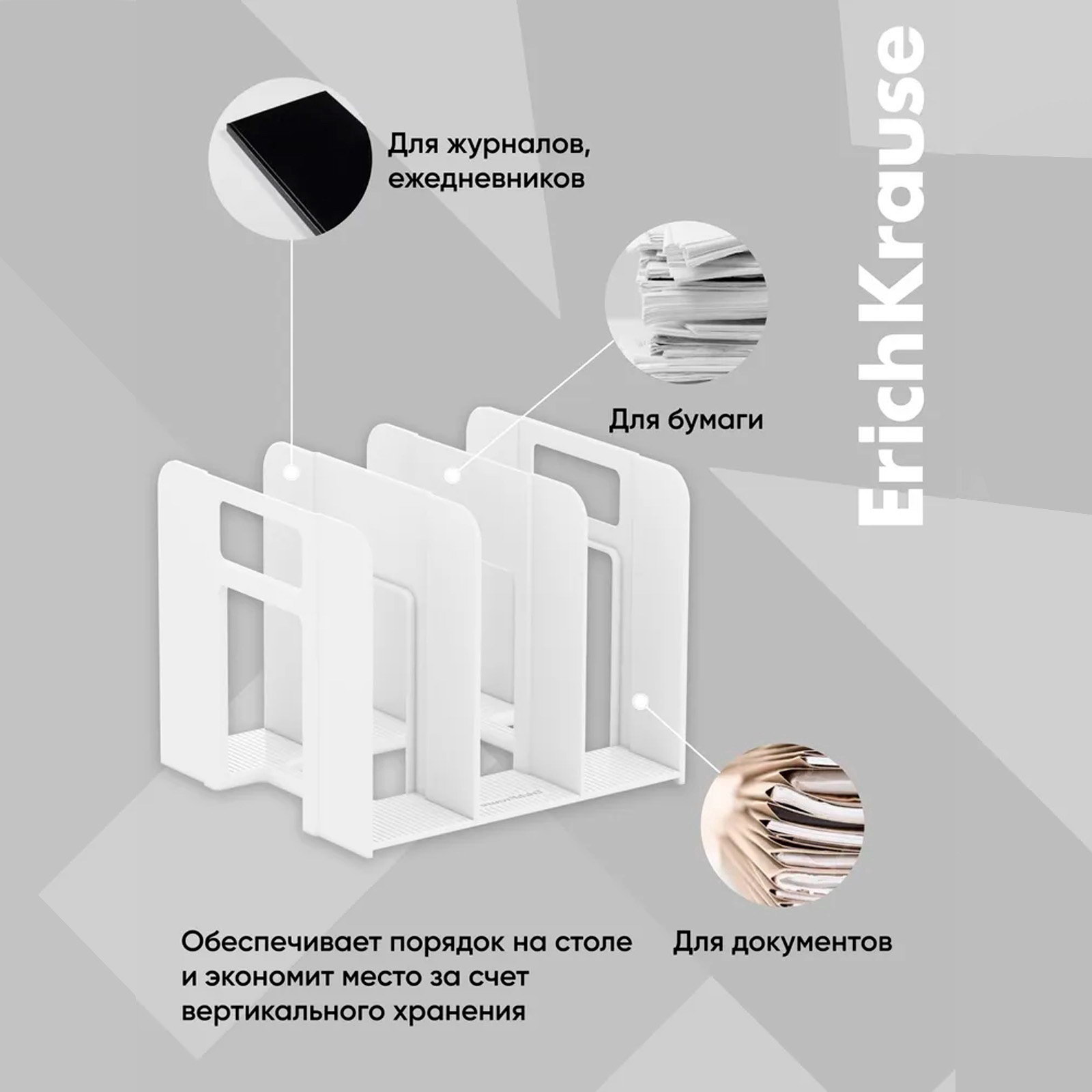 Лоток-сортер для бумаг вертикальный, 3 отделения, Techno Classic, белый, 16x18x19.5 см., ErichKrause, Россия