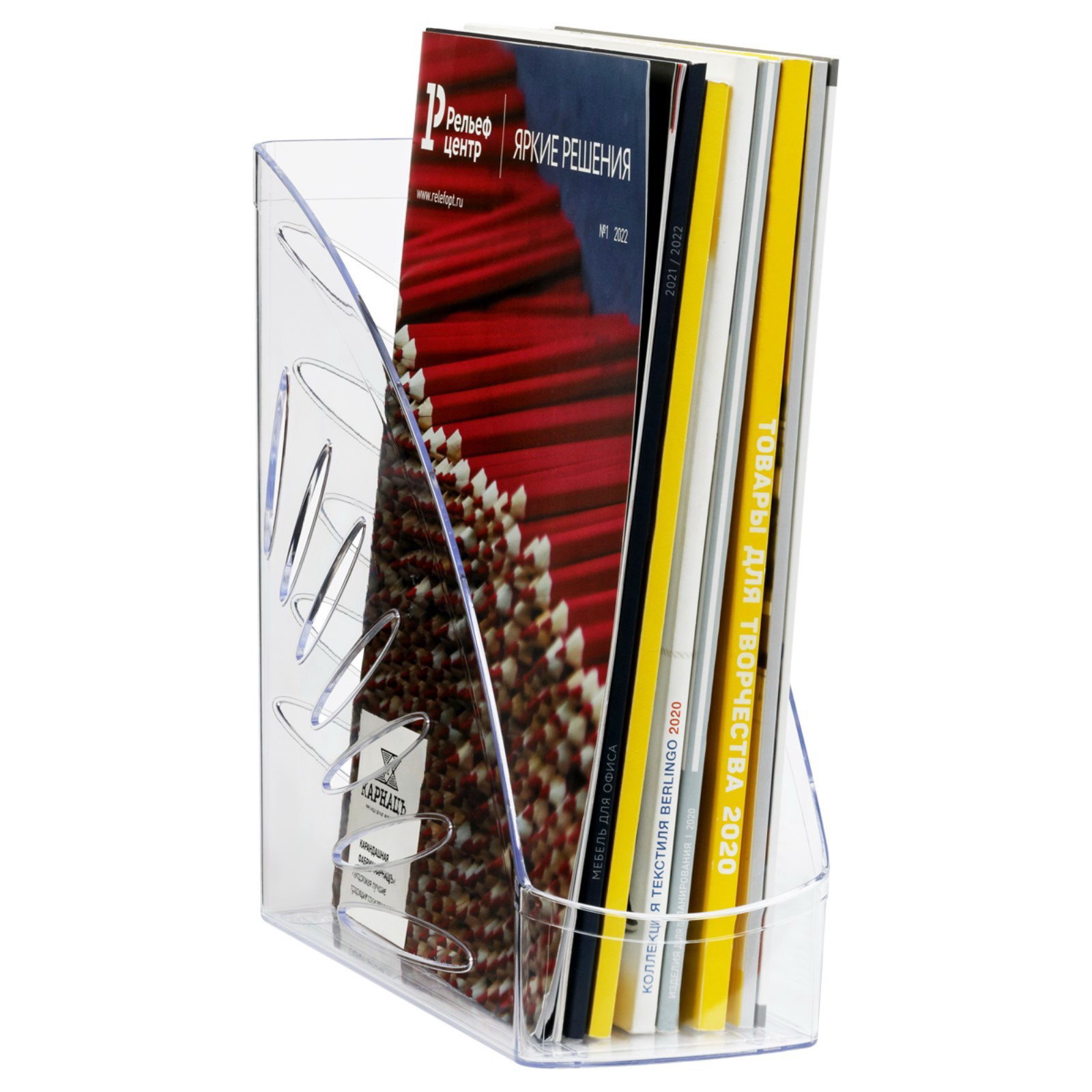 Лоток для бумаг "Лидер", А4, вертикальный, 1 отделение, прозрачный, ширина 70 мм, 10x26x24.5 см., Стамм, Россия