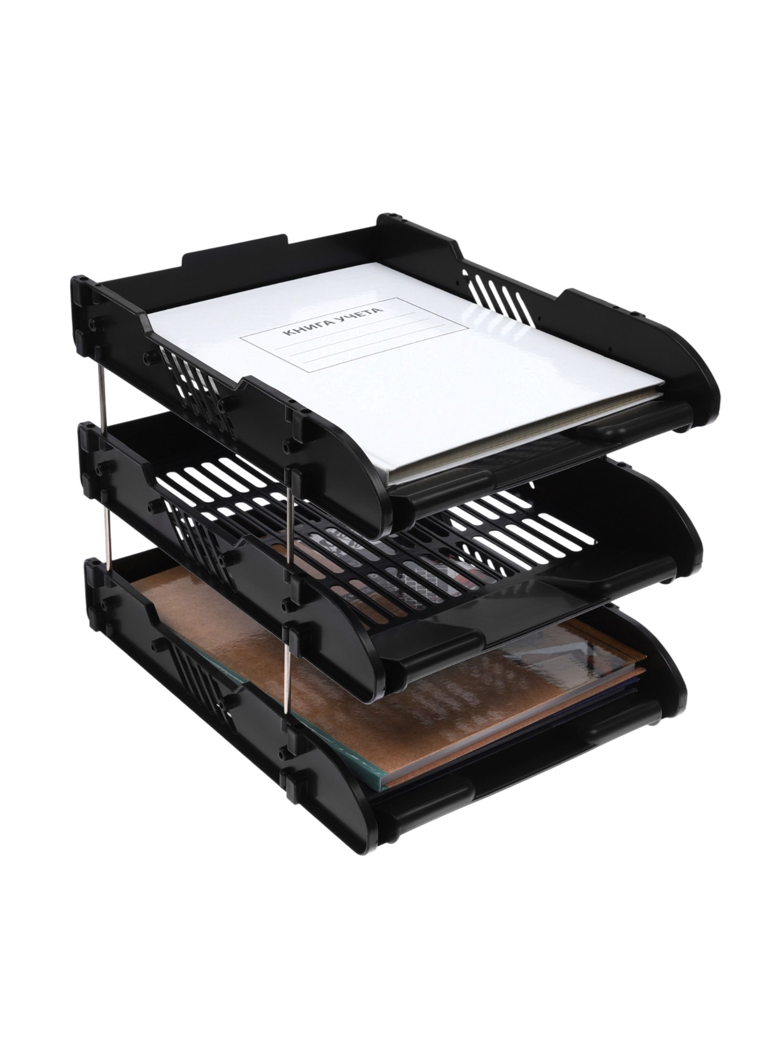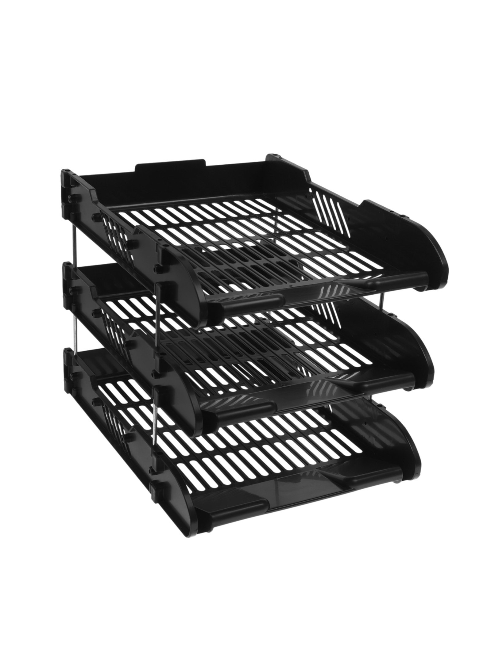 Набор лотков для бумаг, 3 штуки, горизонтальные, на металлических стержнях, чёрные, Calligrata, Китай